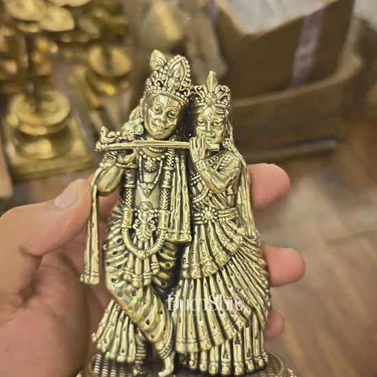Intricate Lightweight Brass Radha Krishna Idol - 6"