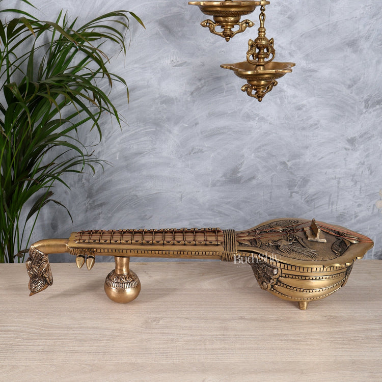 Large Brass Veena Showpiece | Saraswati Instrument Décor for Home & Office 20"