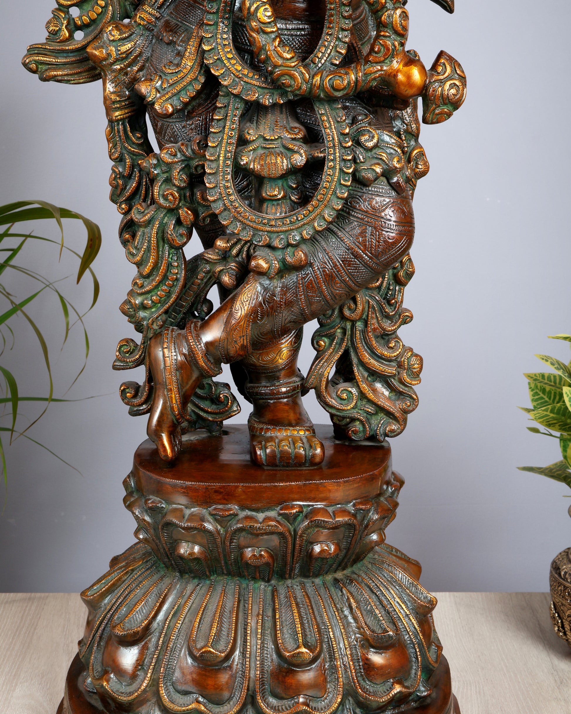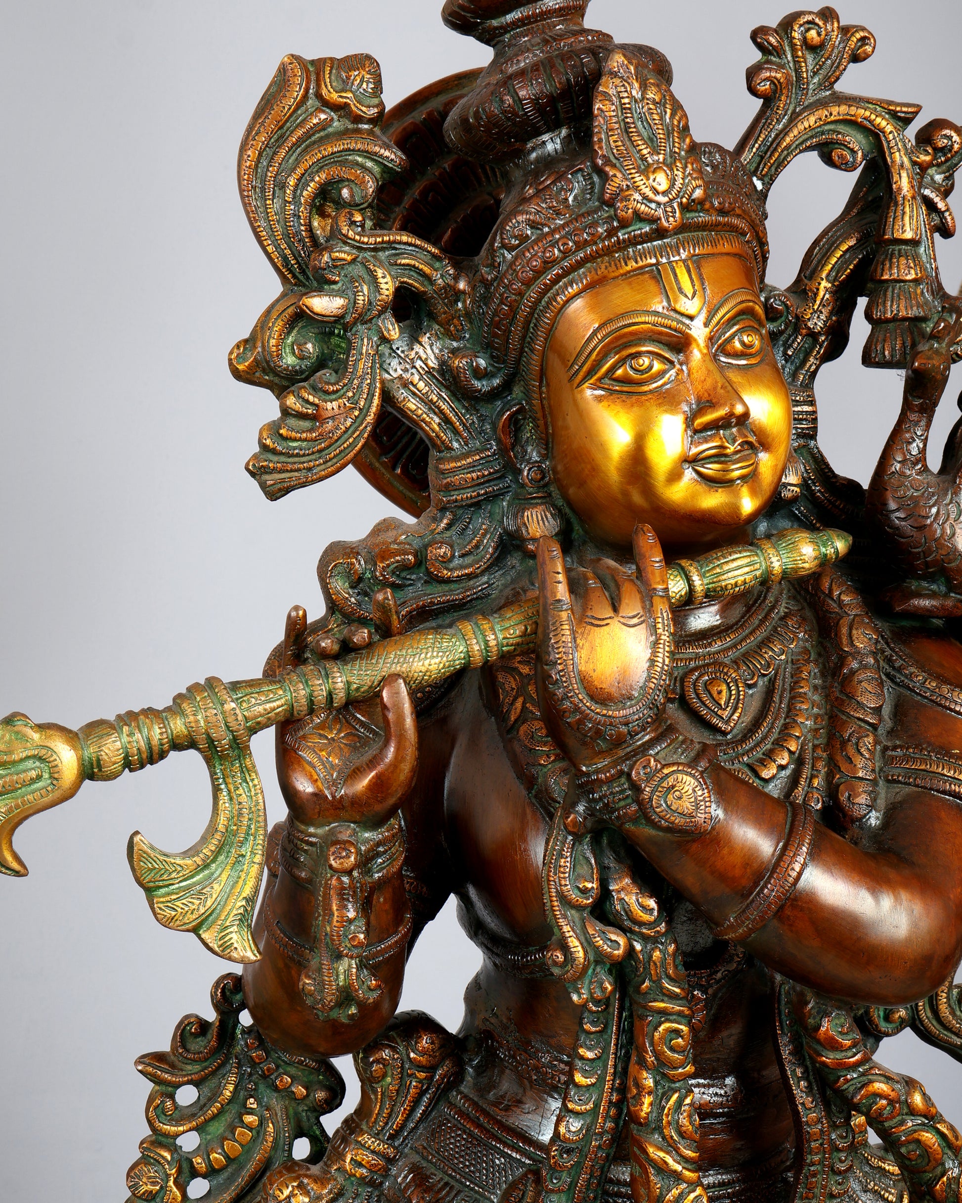 Large Lord Krishna 36" Brass Sculpture – Chola Style