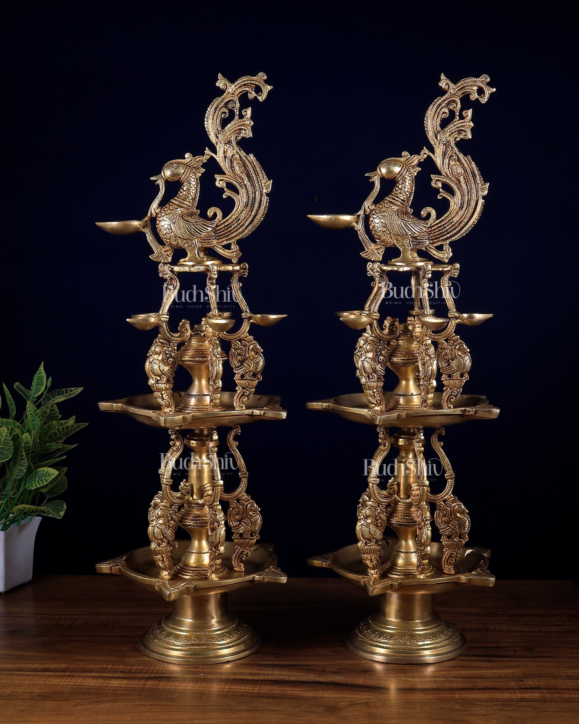 Pair of Large Brass Superfine Annam Pakshi Oil Lamps – Double Storey Vilakku 27 inch