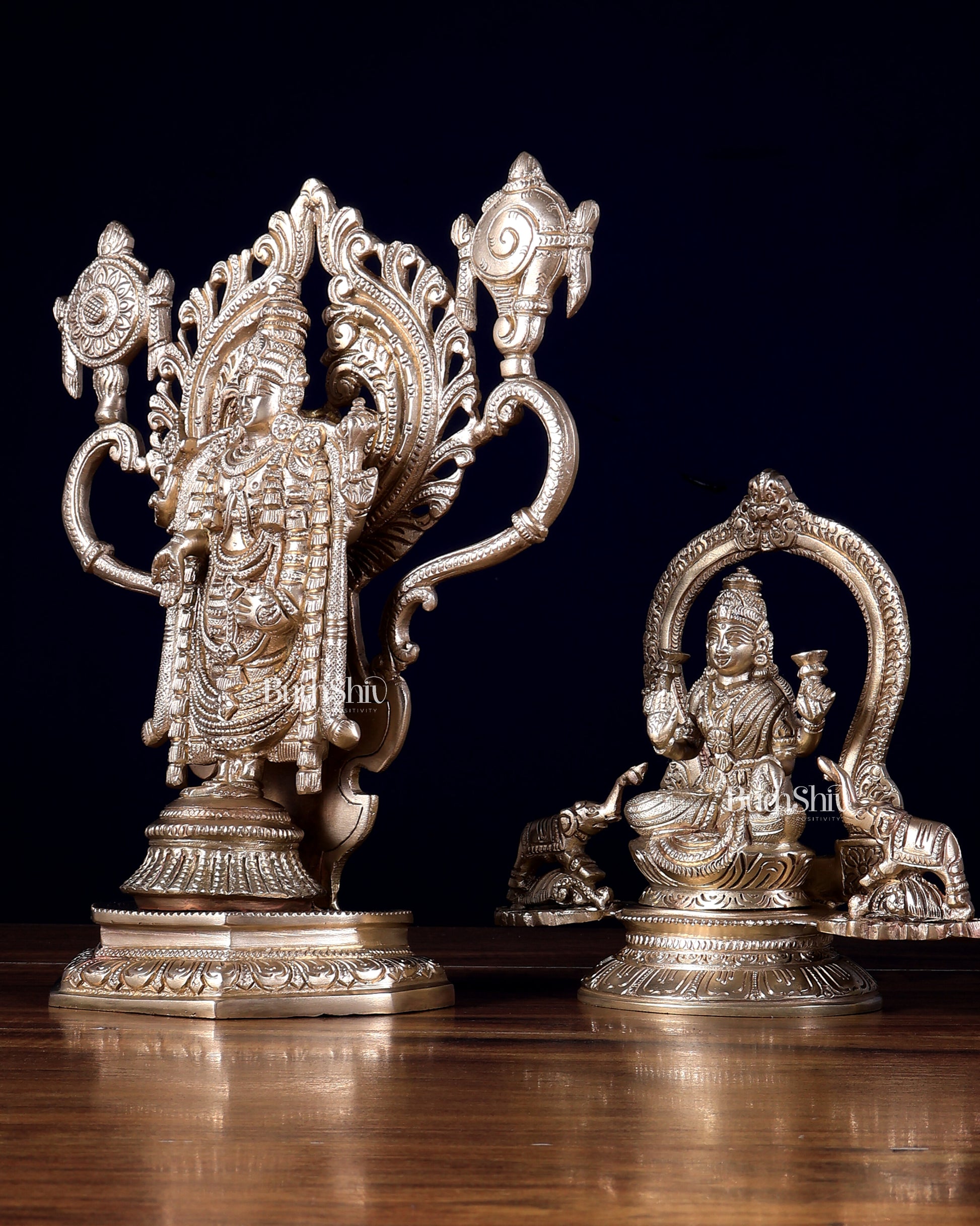 Crafted in solid premium brass, both idols feature traditional temple-style detailing and balanced proportions, making them ideal for home mandir, office, vastu placement, and auspicious gifting.