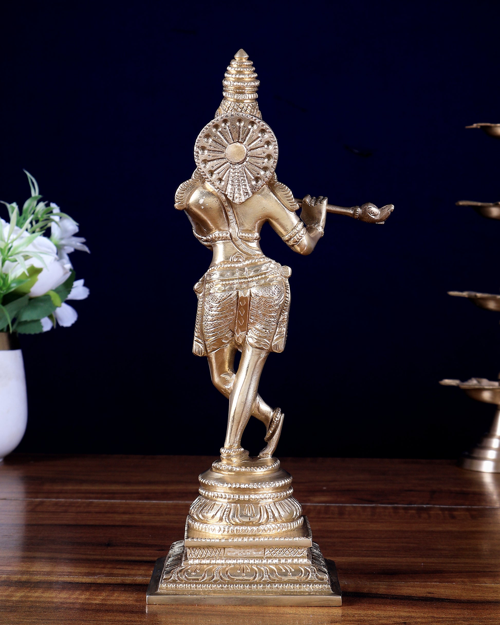Premium Brass Lord Krishna Sleek Idol – 9 Inch | Elegant Brass Krishna Statue | BudhShiv