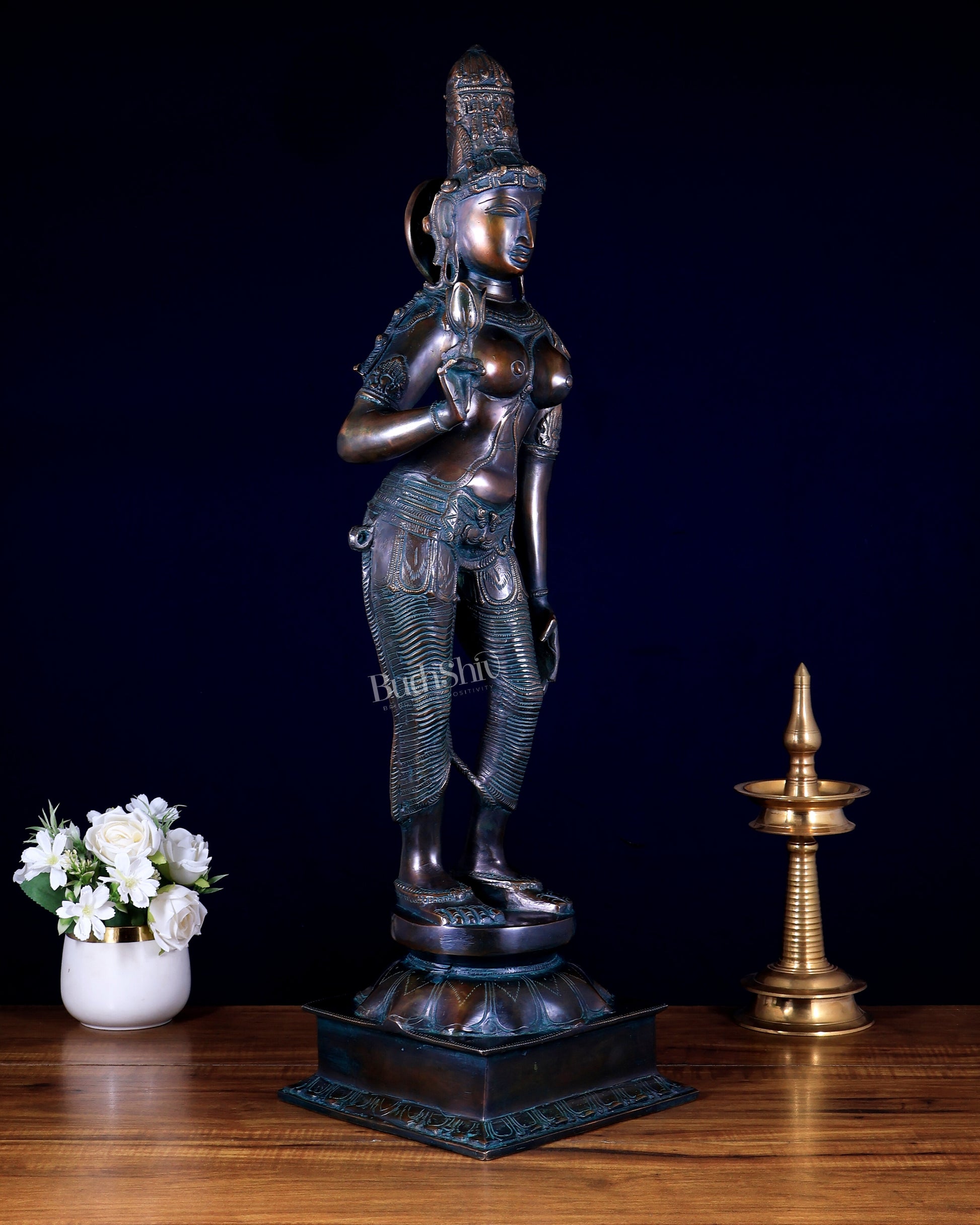 Pure Brass Bhoga Shakti Standing Uma Parvati Statue – bronze tone 29.5 inch