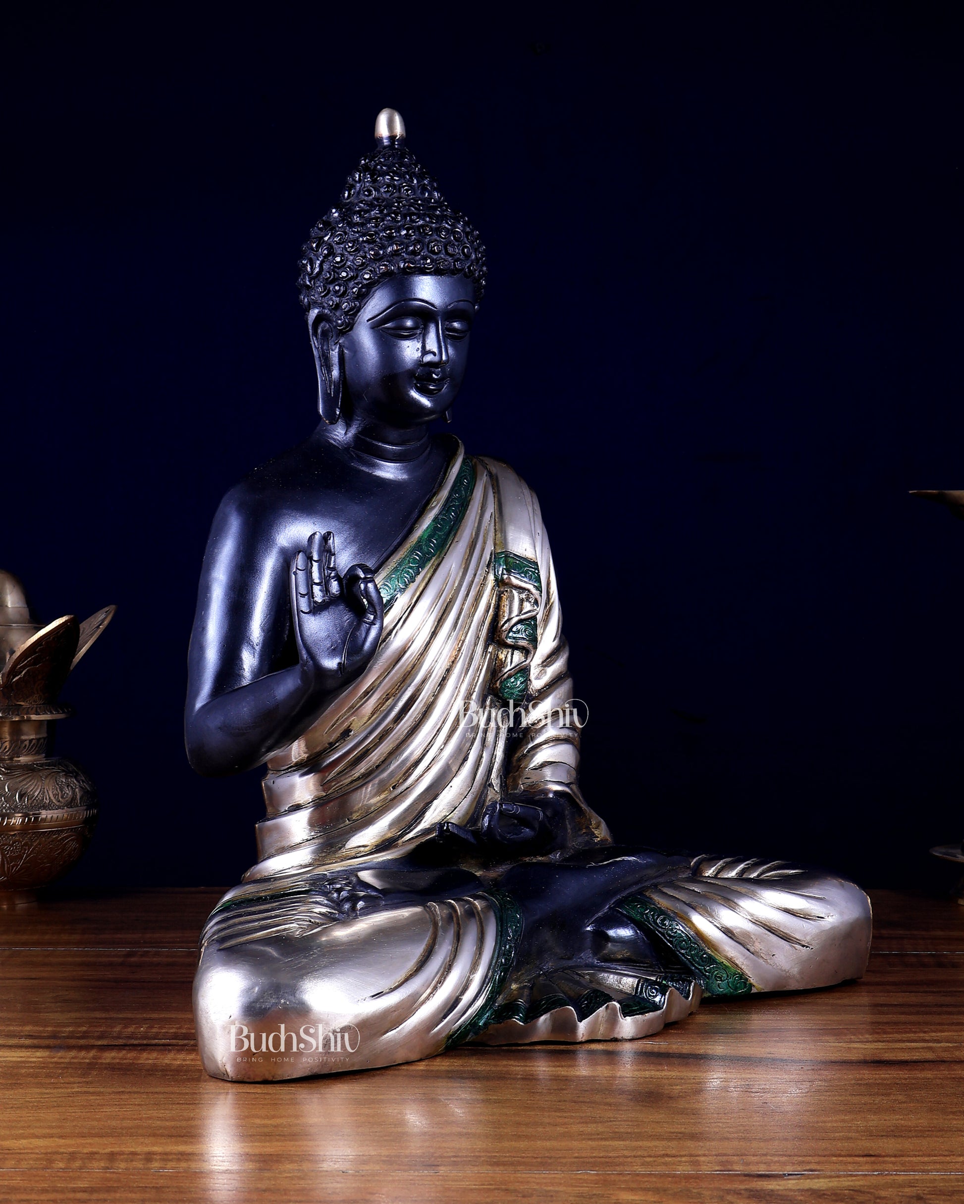 Elevate your space with this Vintage Pure Brass Blessing Buddha Statue, standing 15 inches tall. Handcrafted with intricate details, it embodies serenity and wisdom, making it a perfect addition to your home or office décor.