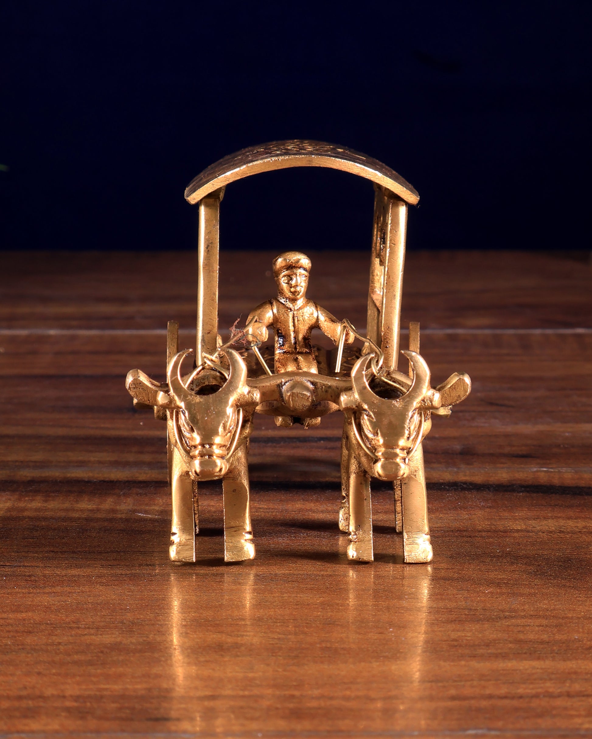 Pure Brass Bullock Cart with Rider – Small Decorative Showpiece 4 inch