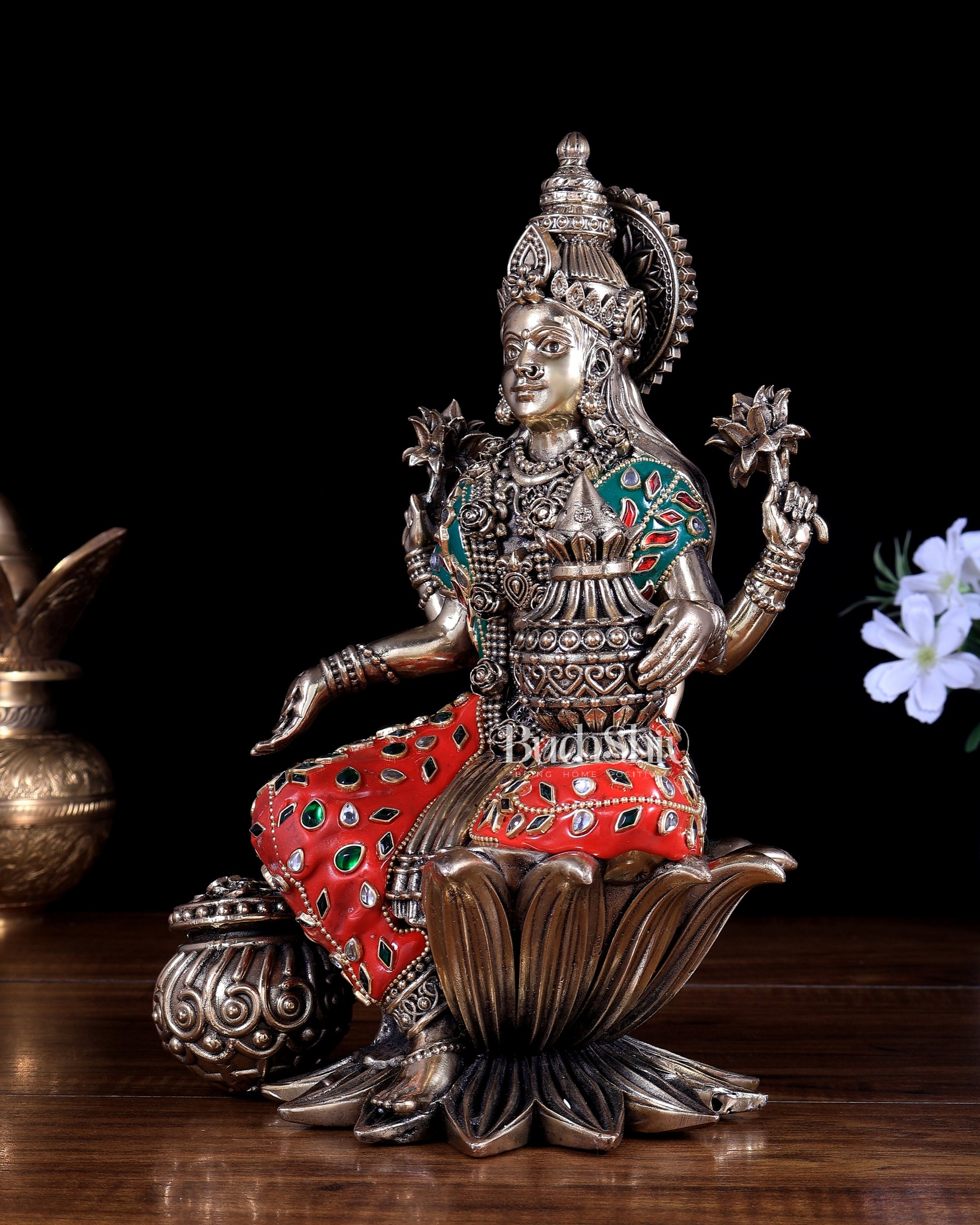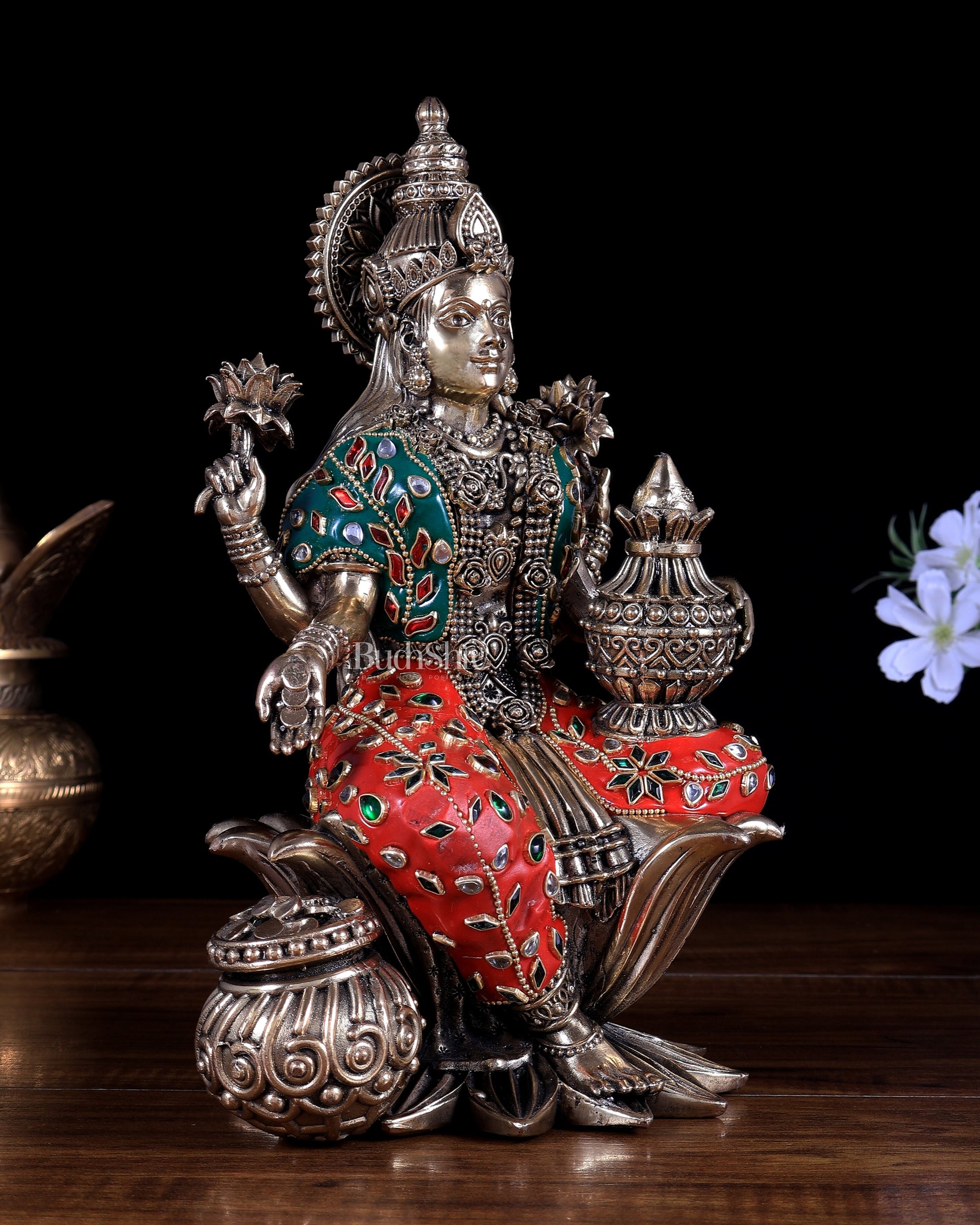 Pure Brass Dhan Lakshmi Idol with Meenakari 10 inch
