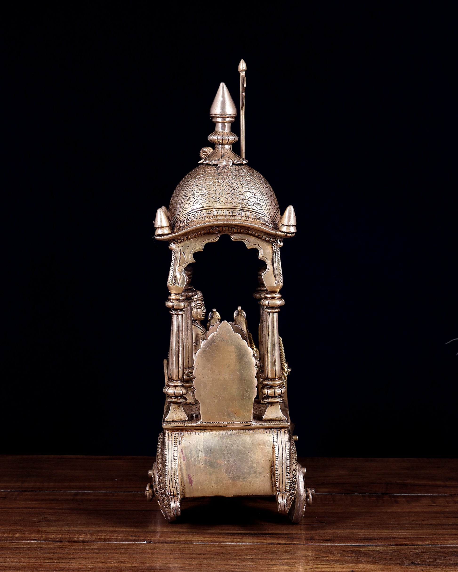 Handcrafted by skilled Indian artisans, this large brass masterpiece showcases intricate detailing of the chariot (rath), the divine presence of Krishna, and Arjun’s humble surrender. Perfect for temples, pooja rooms, meditation spaces, or as a powerful spiritual décor centerpiece.