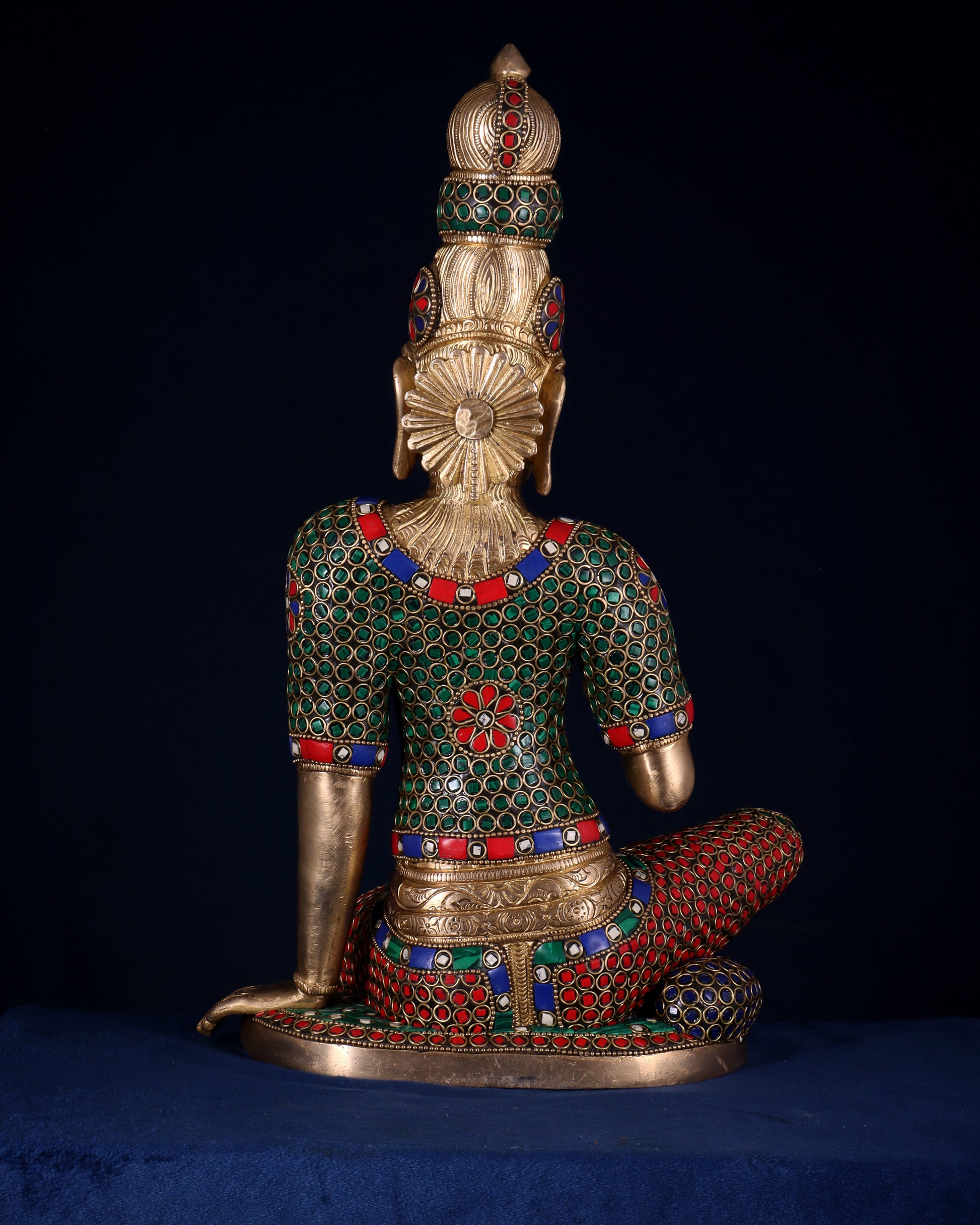 A stunning Chola-style sculpture of Goddess Uma Parvati, with meenakari Stonework designed without a base for a seamless display on edge shelves or desks. This handcrafted piece reflects timeless divinity and elegance.