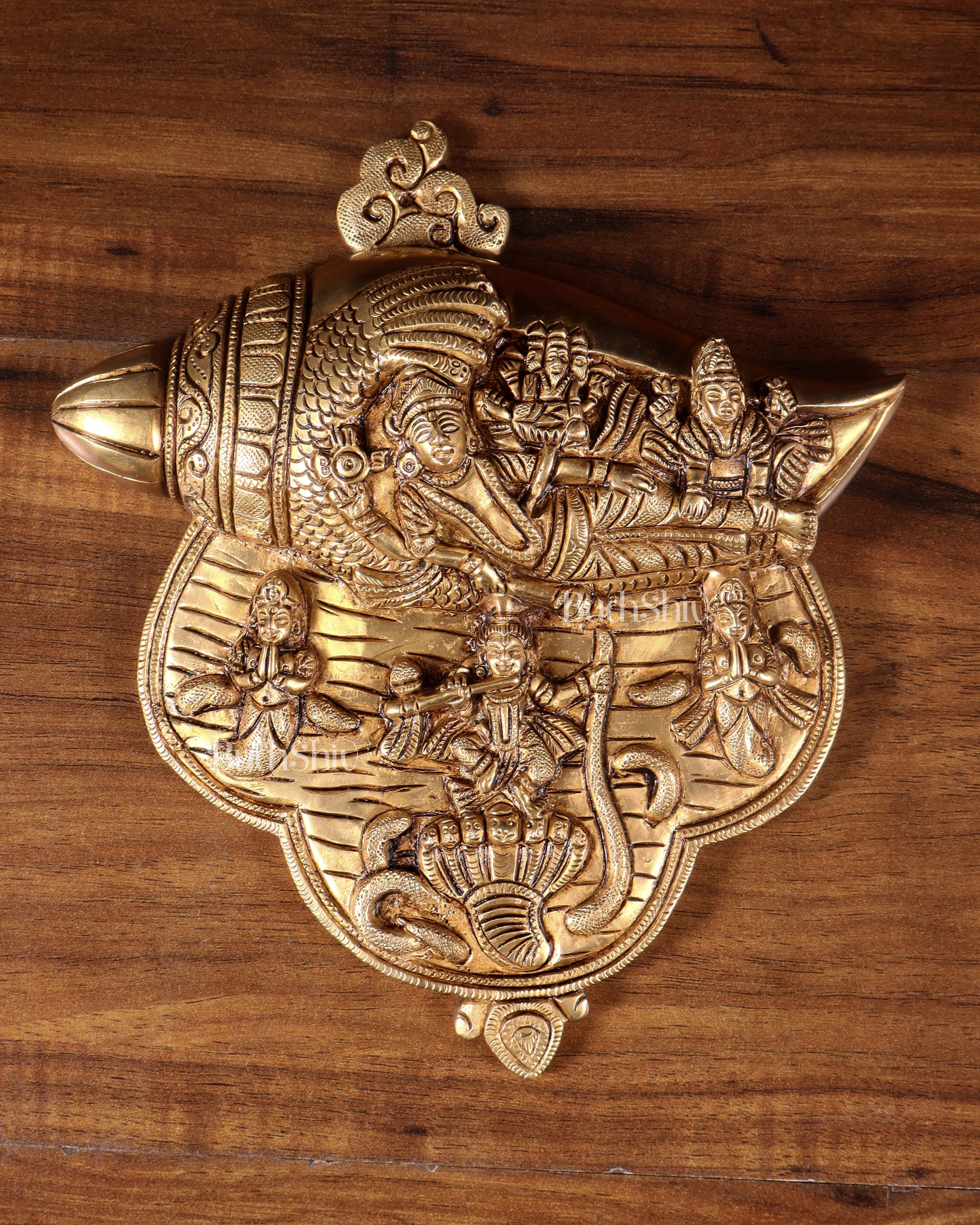 Pure Brass Lakshmi Narayana with Kalinga Krishna Carved on Shankh | Wall Hanging