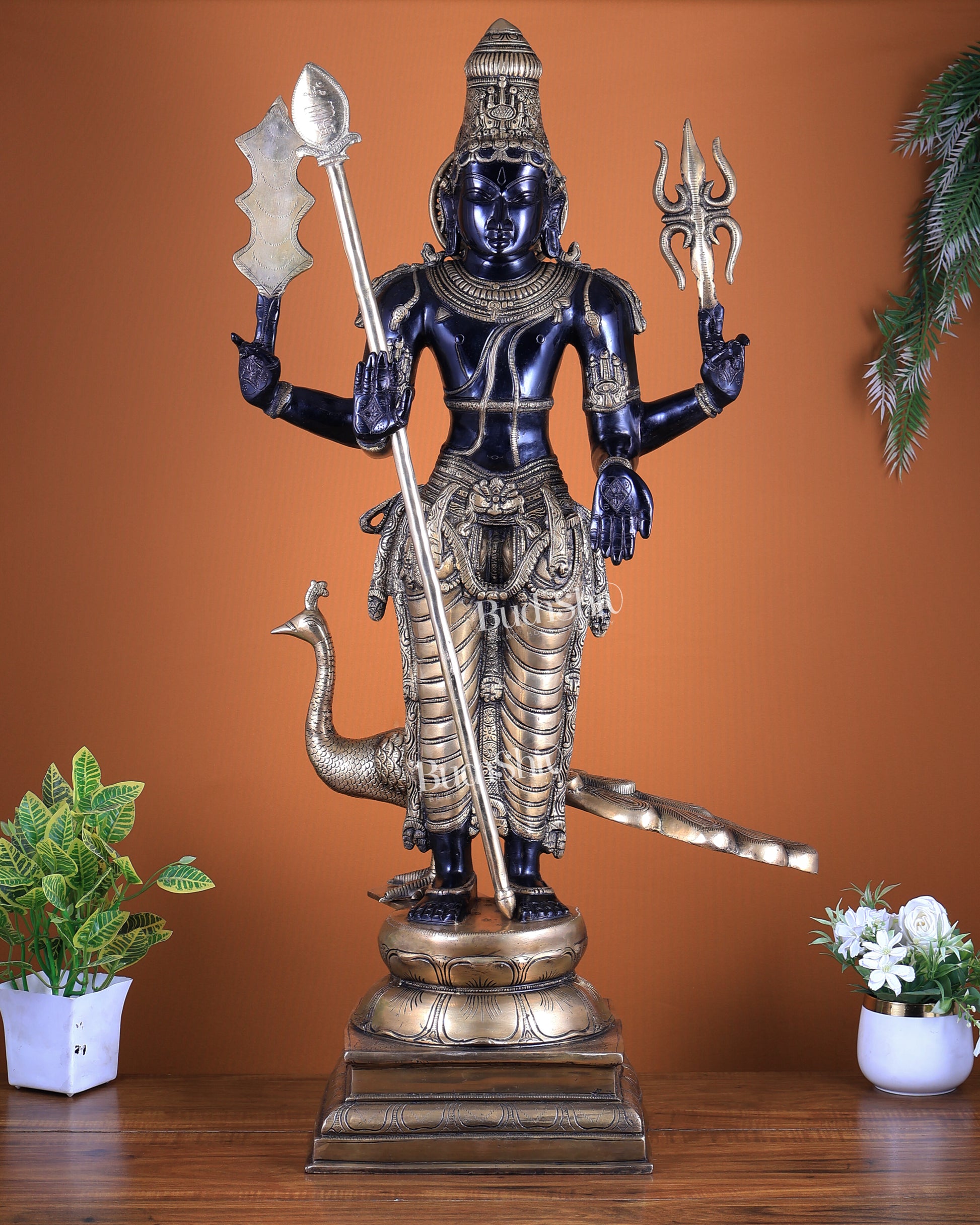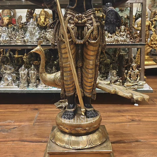 Pure Brass Large Murugan Kartikeya Statue | Black Finish 37 inch