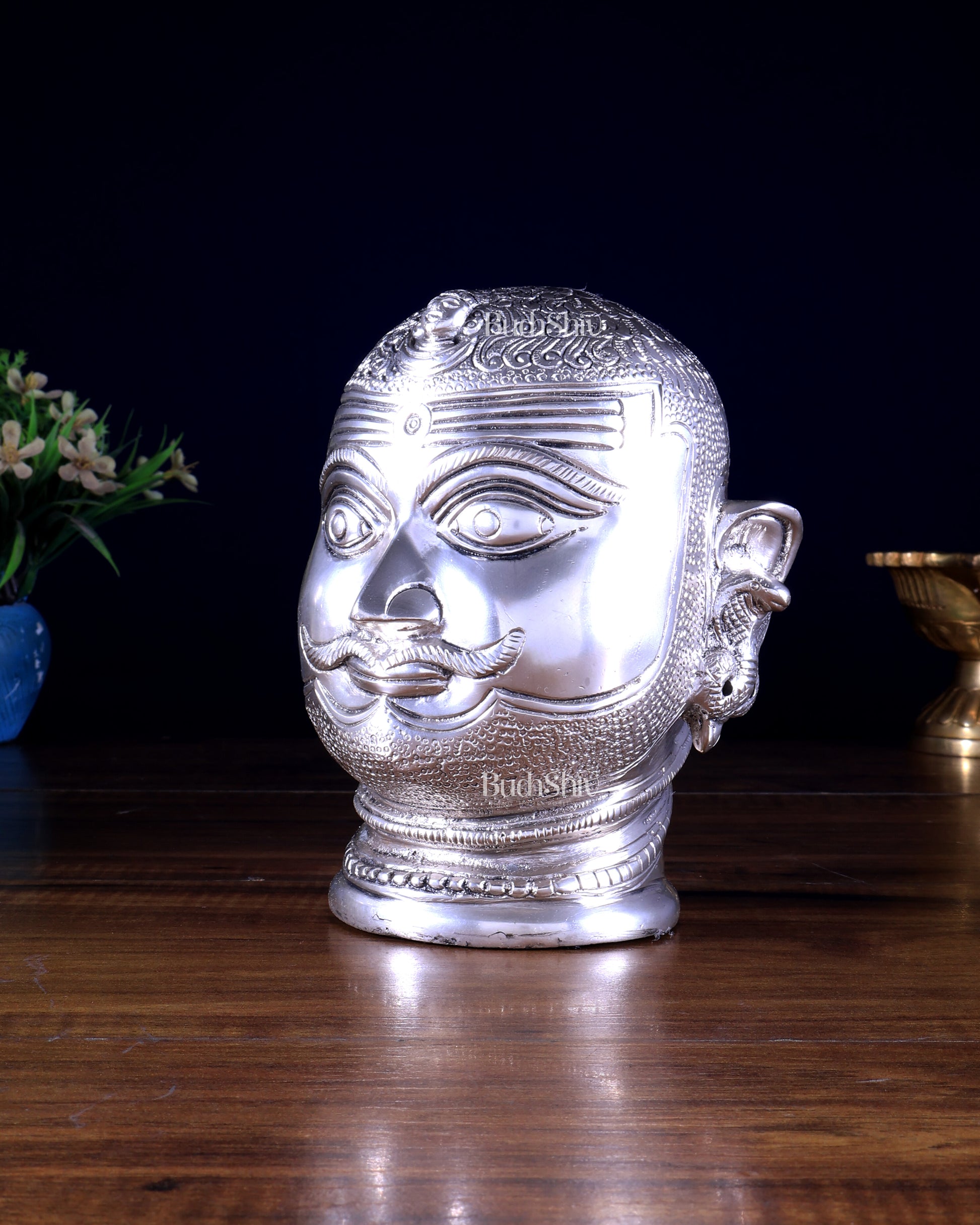 Pure Brass Lord Shiva Mukhlingam Face idol - Silver plated 6"