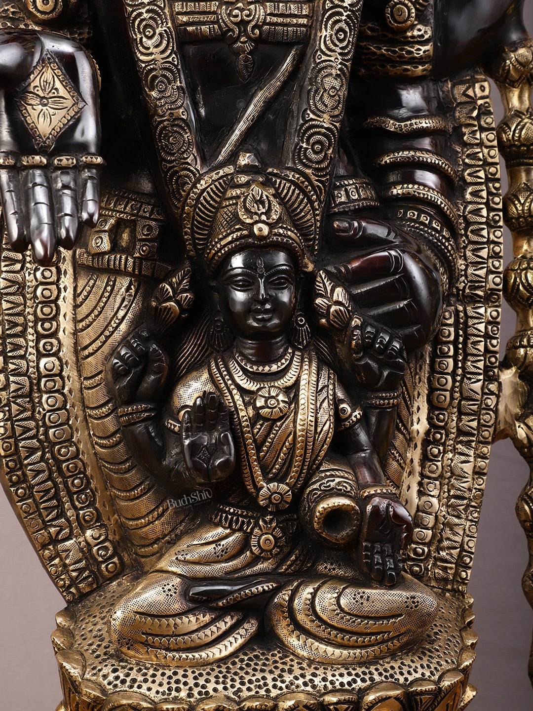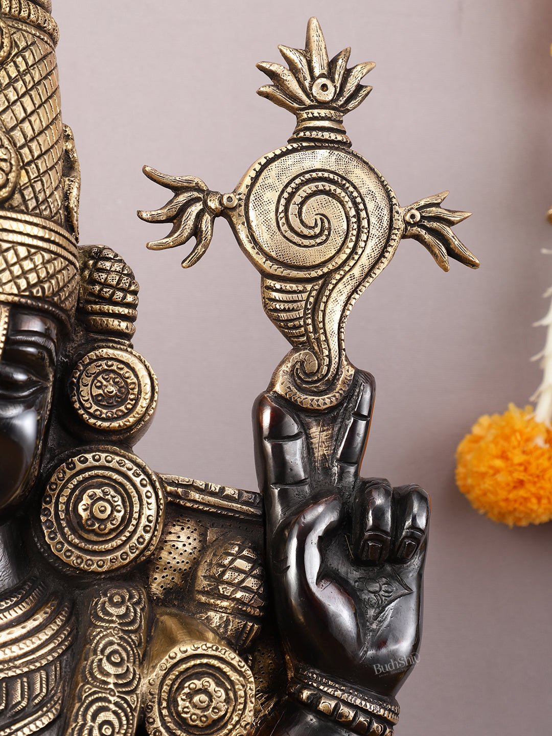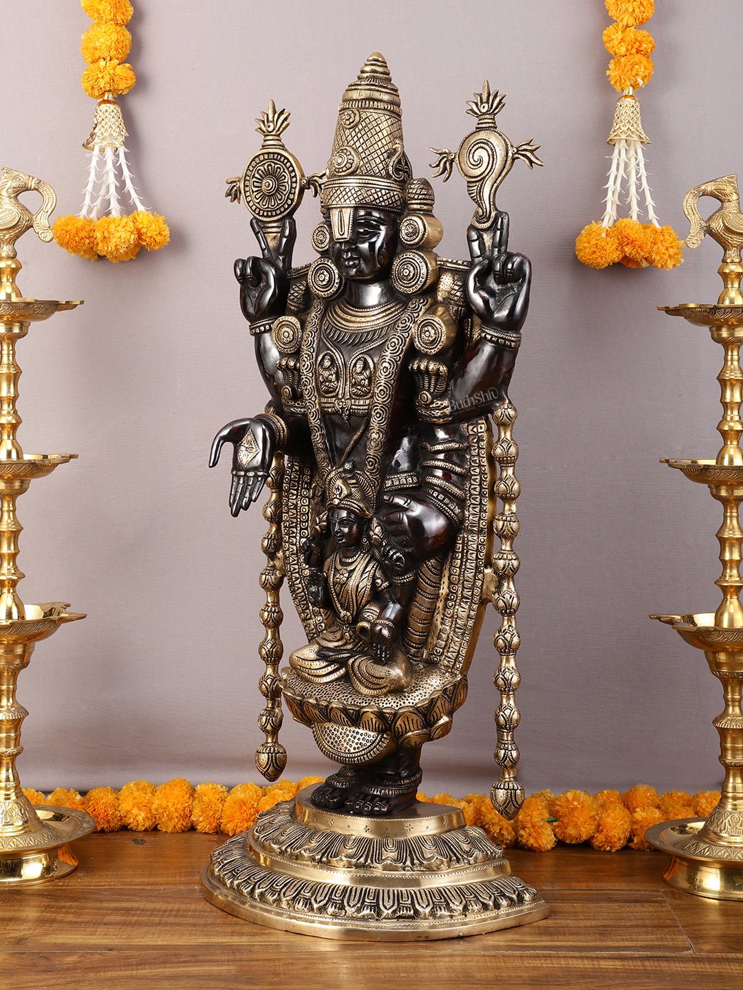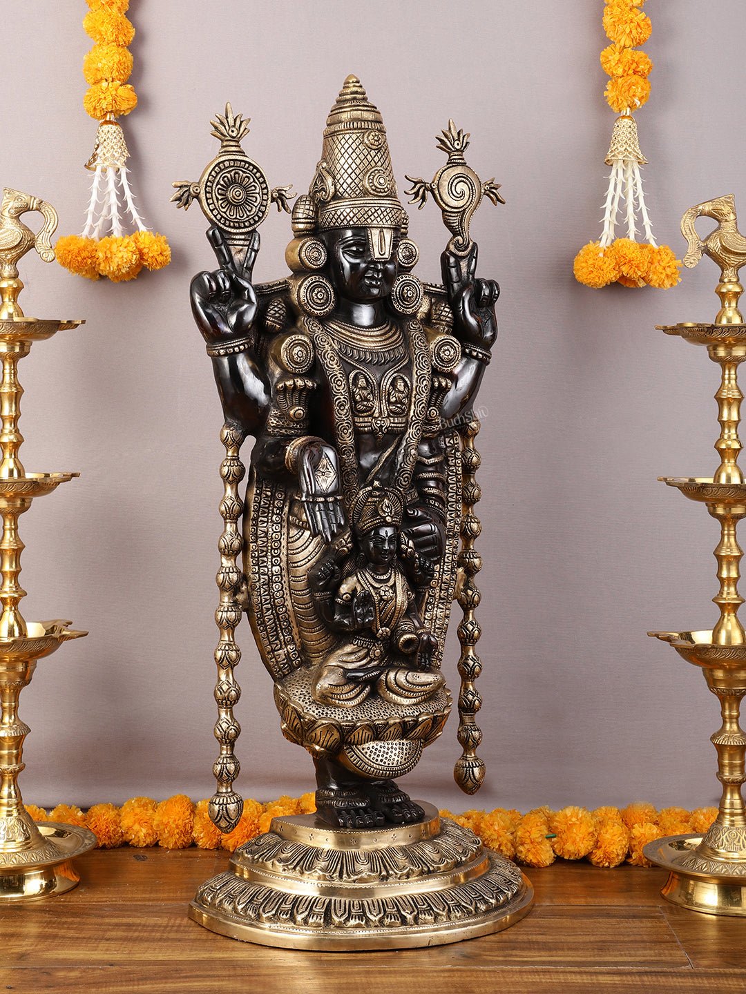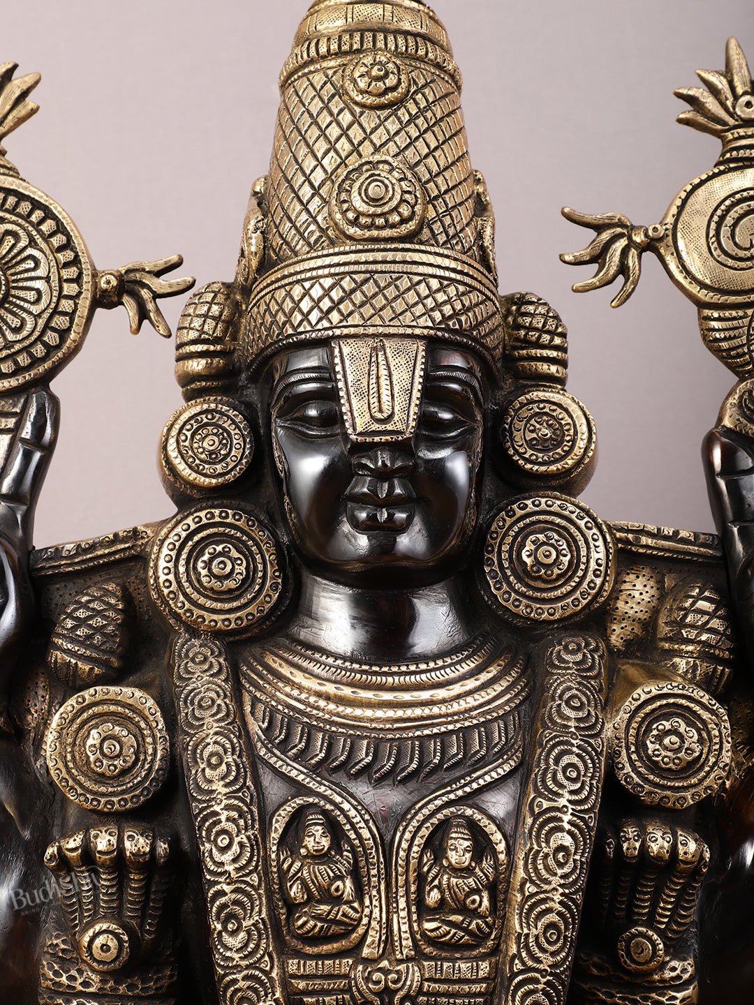 Pure Brass Lord Tirupati Balaji Statue with Goddess Padmavathi Engraved - 34.5 Inch
