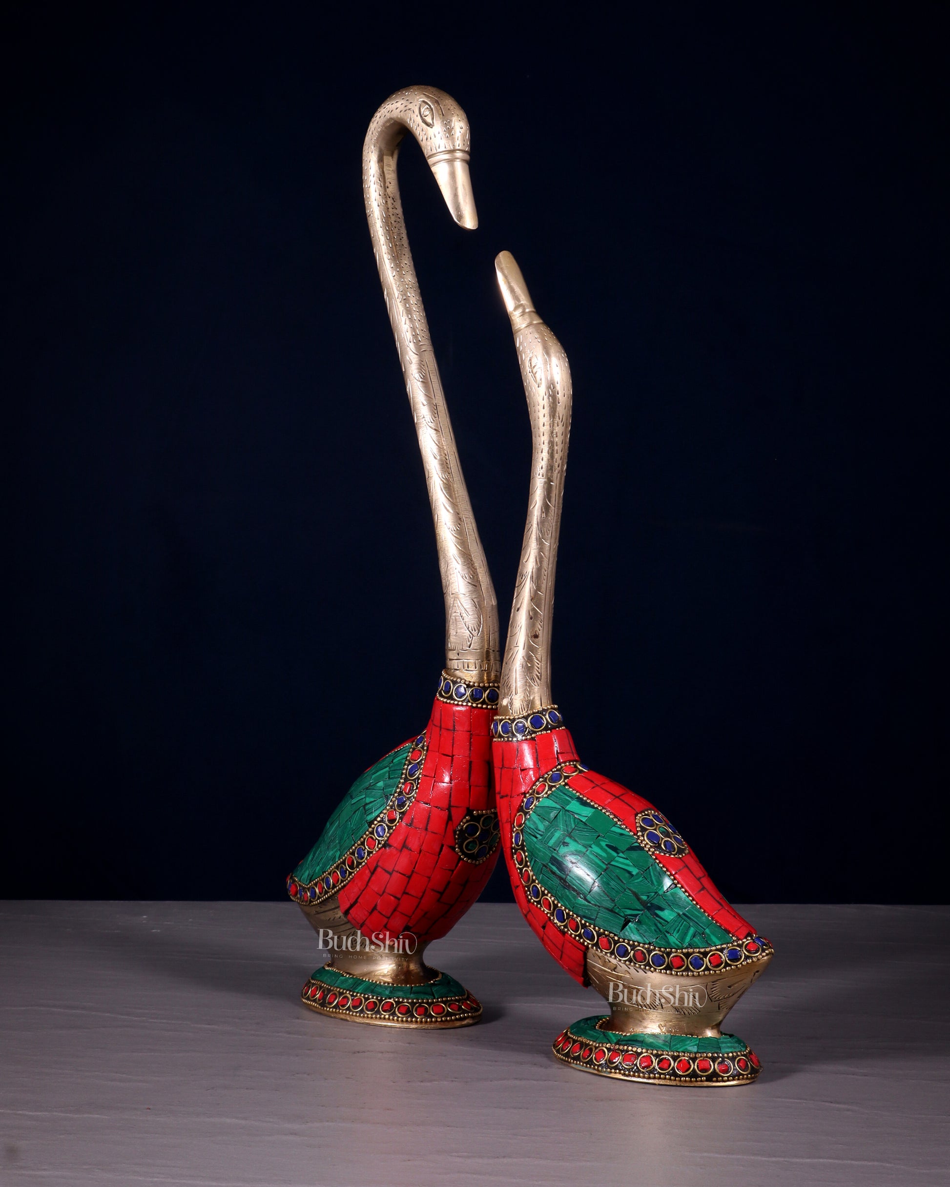 Infuse your living space with timeless beauty and positivity through this stunning Brass Pair of Meenakari Swans, a perfect blend of art and tradition.