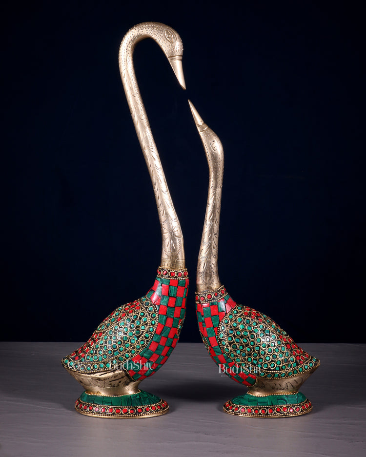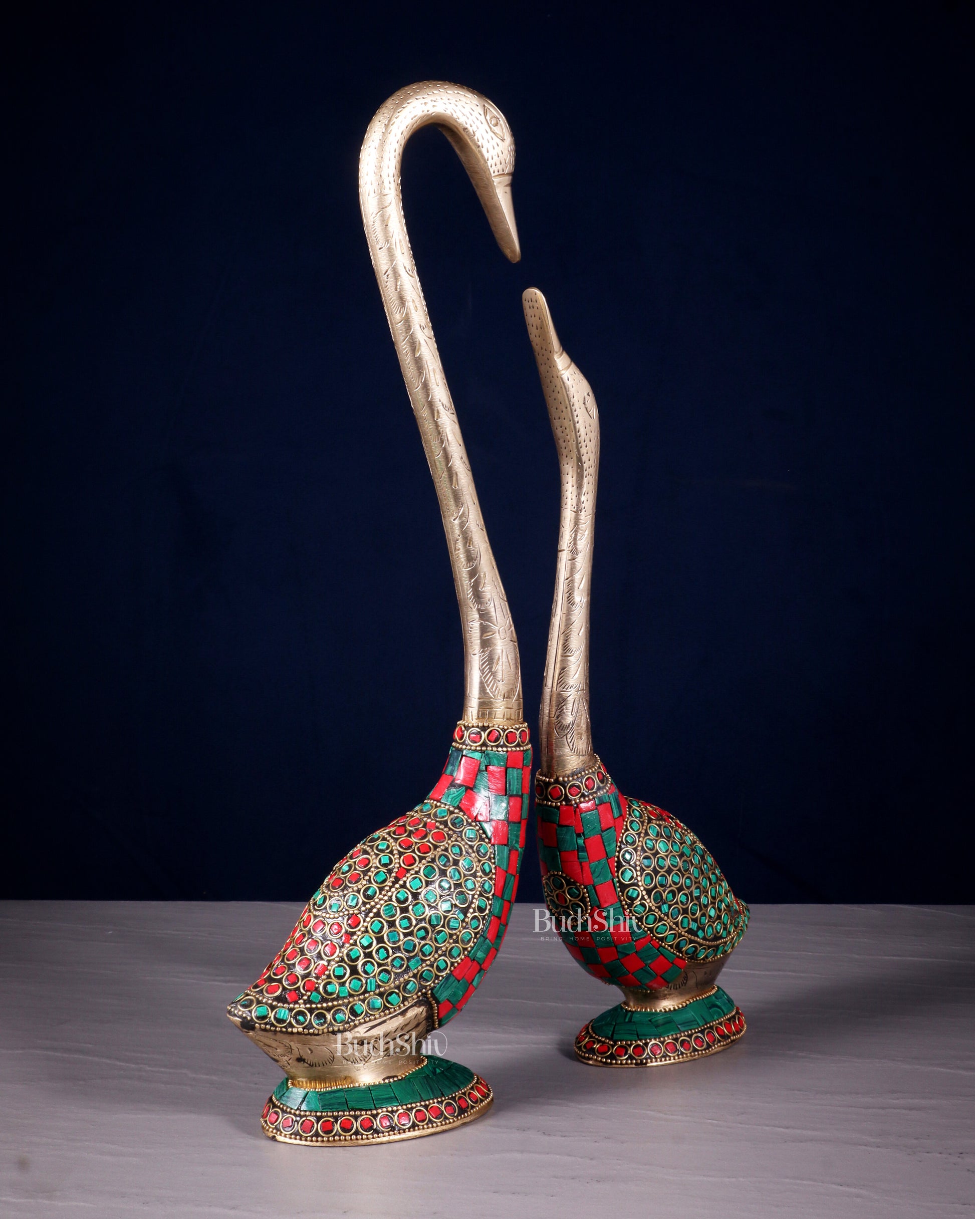 Pure Brass Meenakari Swan Pair - Vastu Approved Home Decor