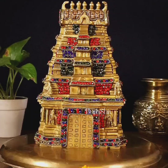 This intricately crafted Meenakshi Temple replica is made from pure brass, capturing the grandeur of the legendary Meenakshi Amman Temple in Madurai, Tamil Nadu. Designed in a vertical layout with delicate carvings and ornamental detailing, this piece is a beautiful symbol of South Indian temple architecture.