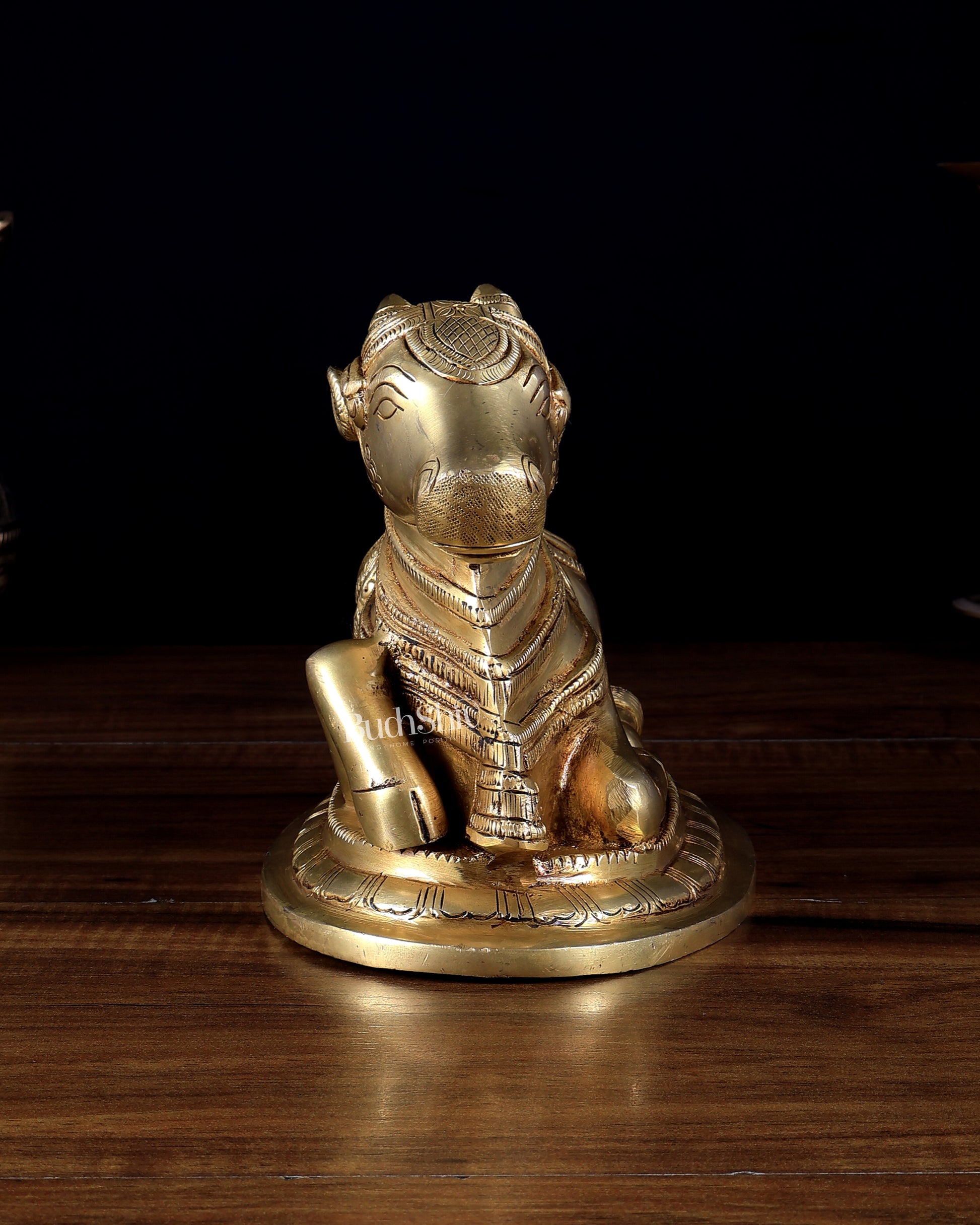 This beautifully sculpted Nandi idol is crafted from high-quality solid brass, giving it exceptional durability and a timeless, antique appearance. The intricate detailing on the body, ornaments, and posture reflects expert craftsmanship inspired by traditional Indian temple art.