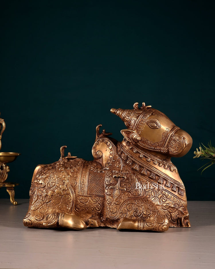 Pure Brass Nandi Statue – Intricately Carved