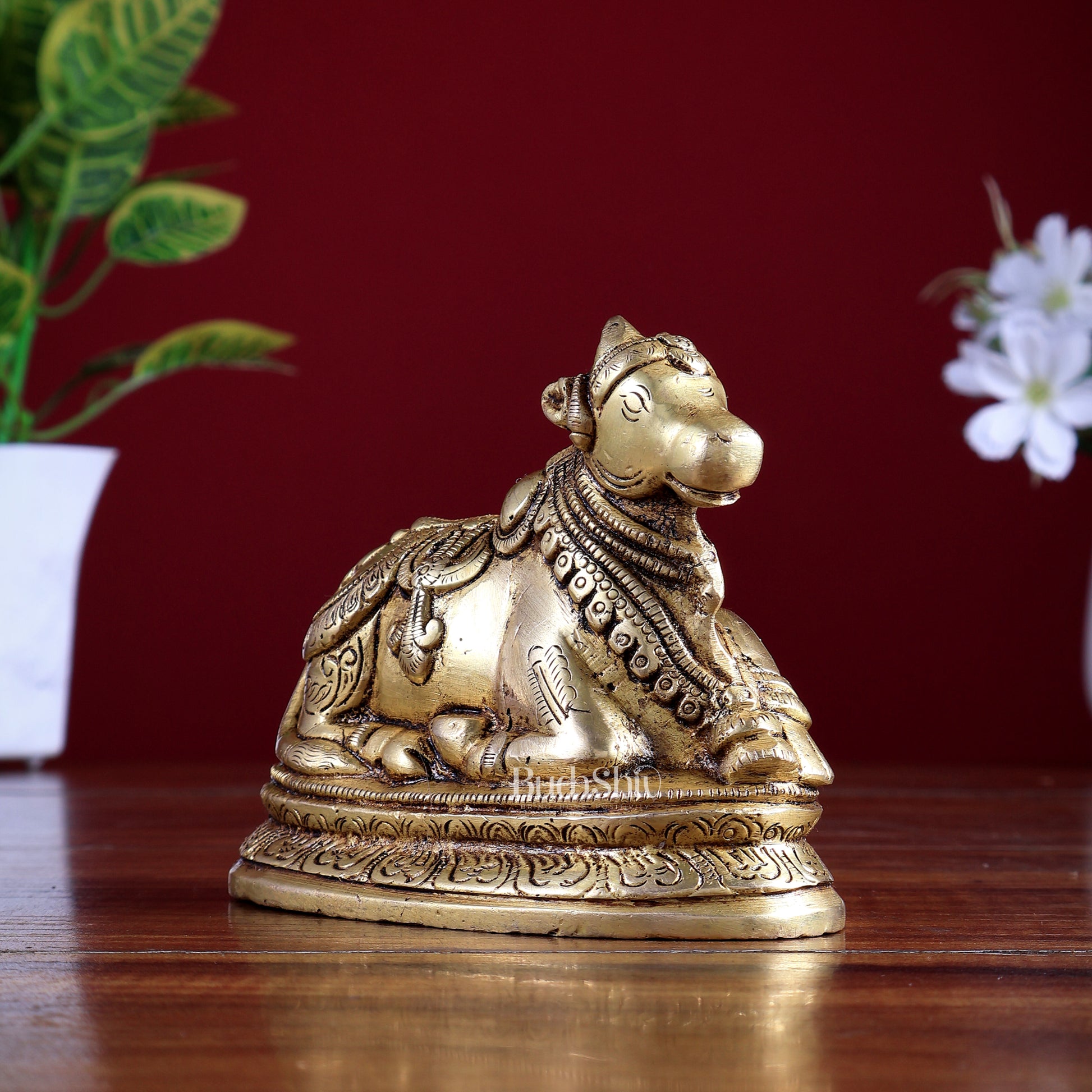 Pure Brass Nandi Statue – Small Size | Natural Brass Tone 5"