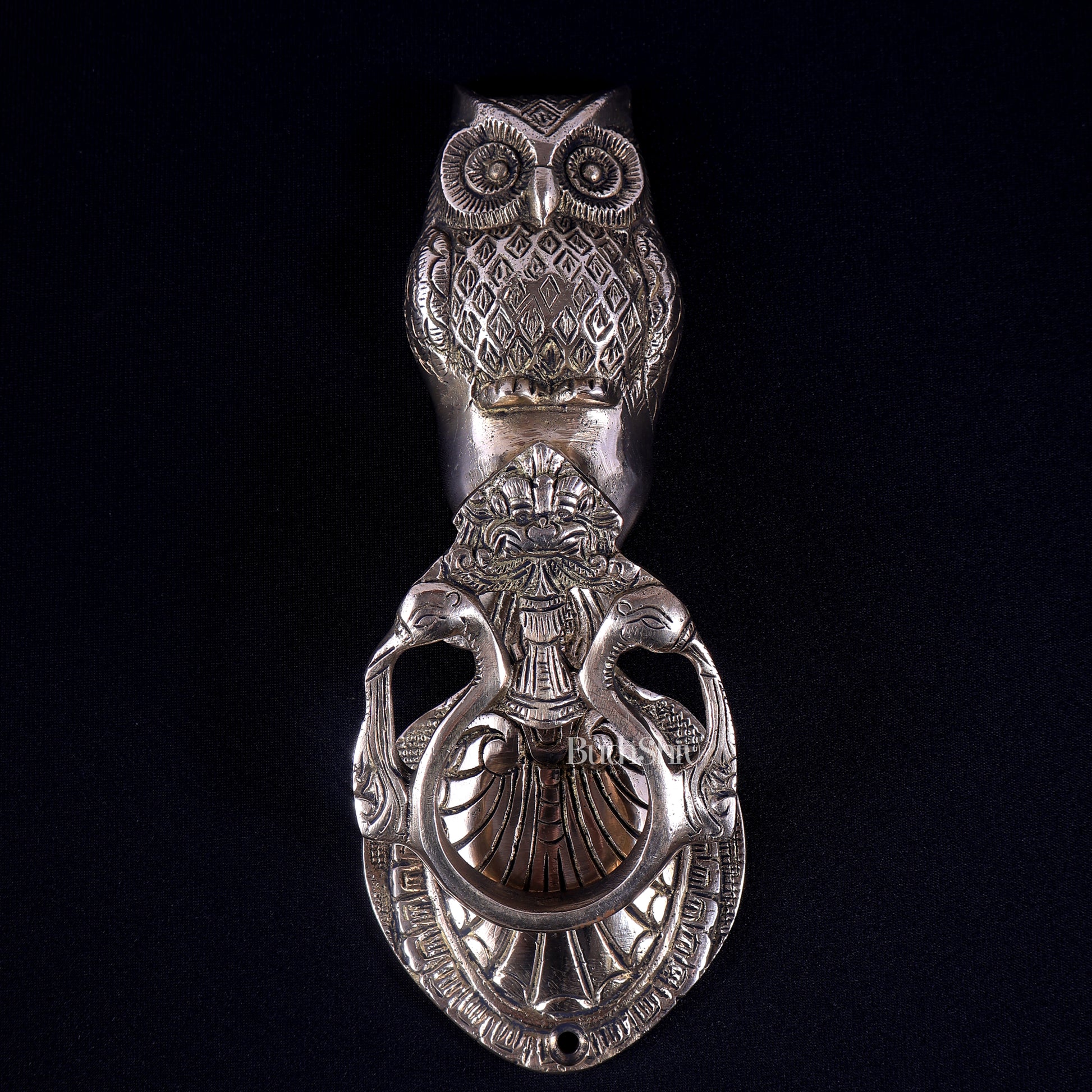 The Brass Owl Design Door Knocker is inspired by traditional beliefs where the owl represents wisdom, alertness, and wealth. In vastu and folklore, the owl is also associated with Goddess Lakshmi, making it an auspicious symbol for home entrances.