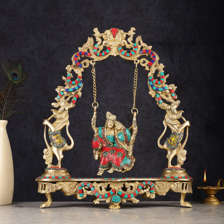 Pure Brass Radha Krishna on Swing - Handcrafted with Natural Stones 18 inch