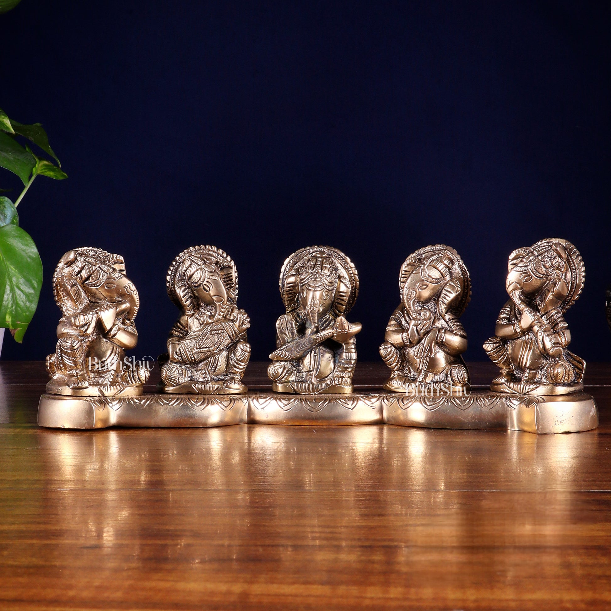Pure Brass Set of Five Musical Ganesha – Showpiece & Gift for Loved Ones 4 inch