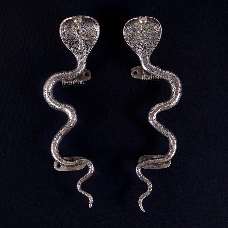 Pure Brass Naga Snake Design Door Handle Pair | Antique Main Door Hardware 11.5 inch