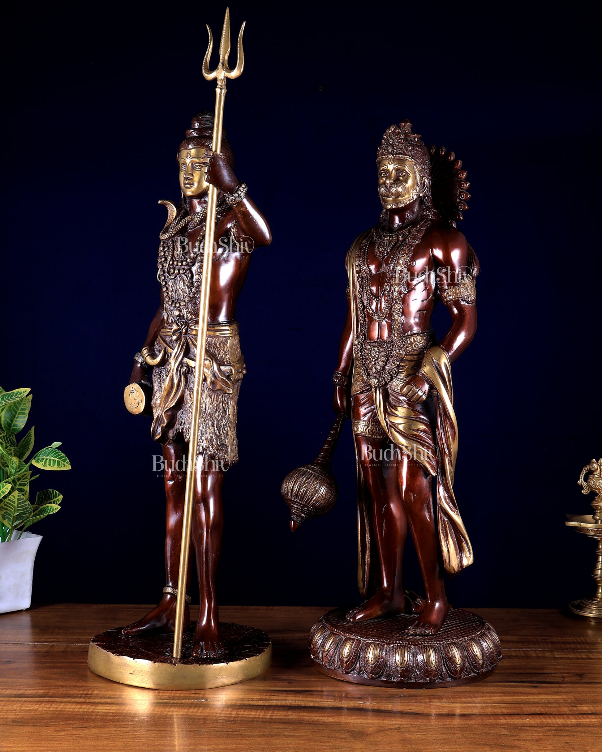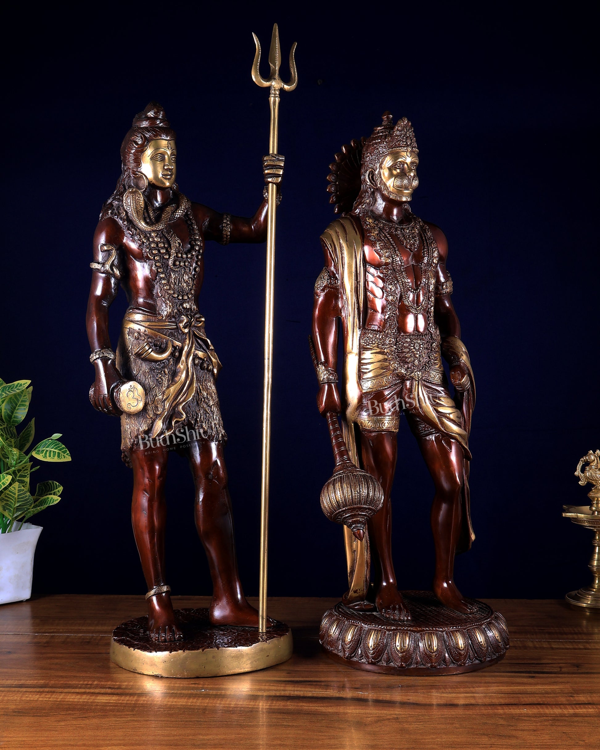 Pure Brass Stunning Hanuman and Standing Shiva dual-tone copper–gold finish Statues.