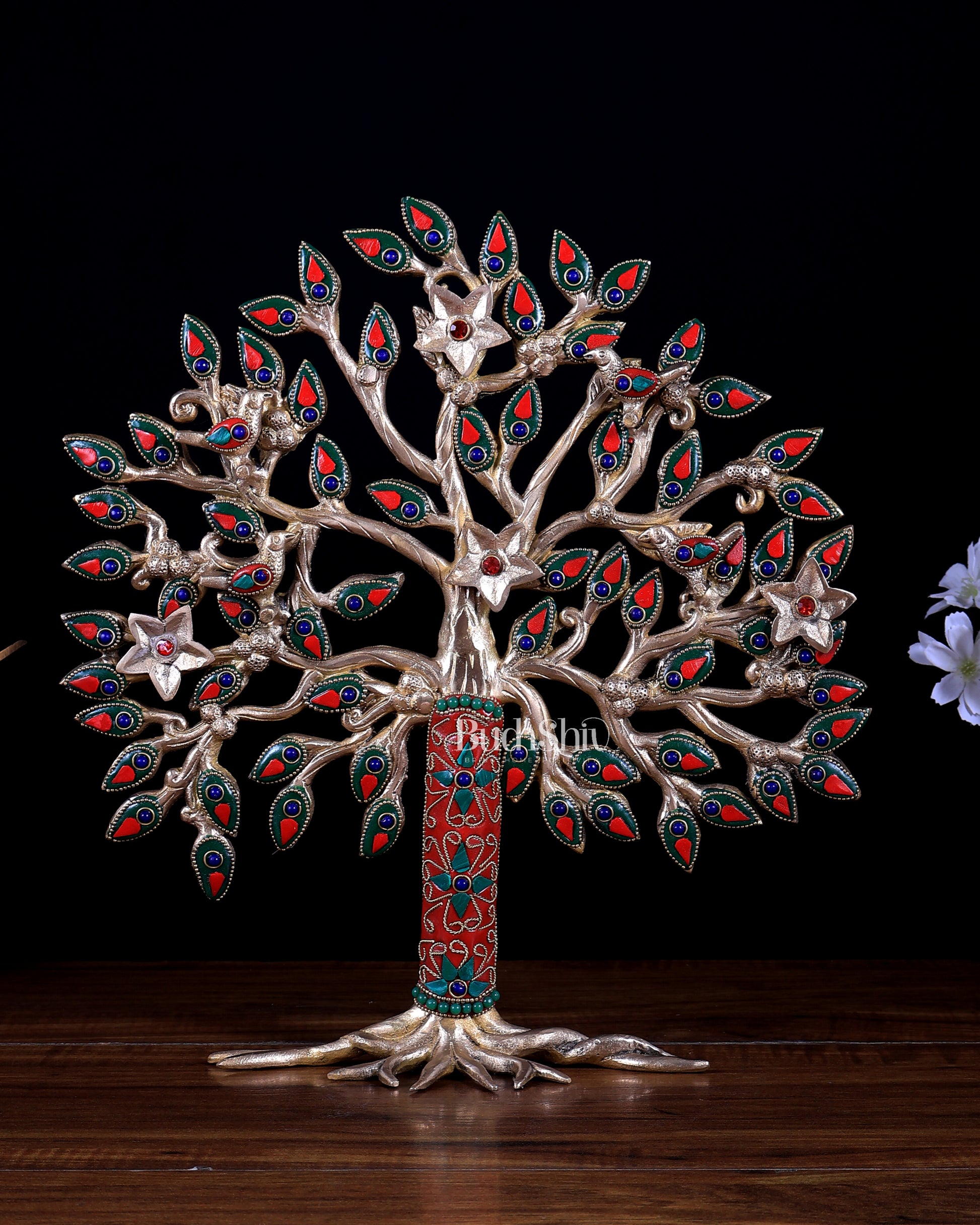 Invite abundance, prosperity, and harmony into your home with this beautifully handcrafted Pure Brass Kalpavriksha Tree of Life with stonework. Known as the wish-fulfilling celestial tree, the Kalpavriksha represents growth, eternal life, and spiritual wisdom. Its intricate leaves, sturdy trunk, and elegant craftsmanship make it a timeless statement decor piece.