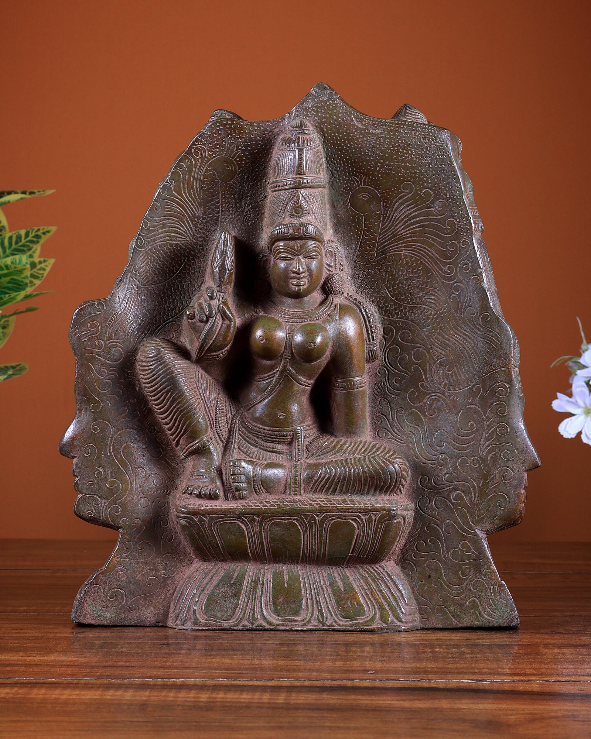 Pure Brass Superfine 3 faced Shiva with parvati Artefact - 11"