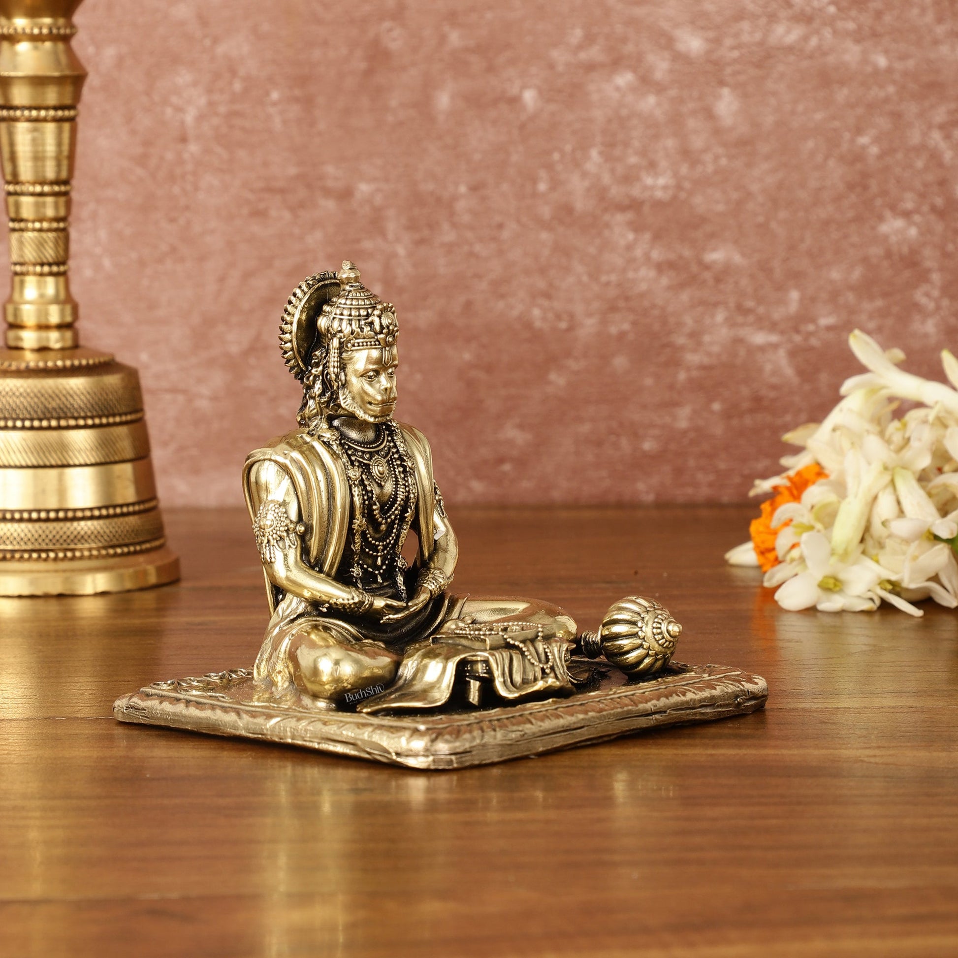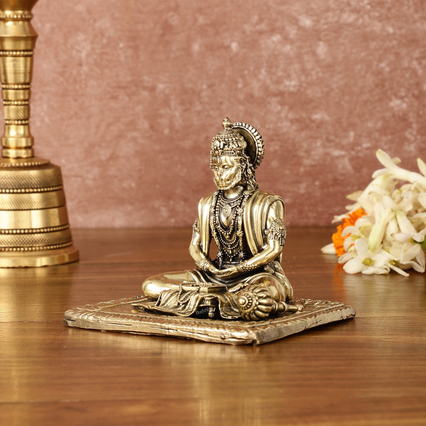 Invite serenity into your home with our Pure Brass Superfine Meditation Hanuman Idol. Intricately carved and measuring 4" in height, 4.5" in width, and 4" in depth, this beautiful idol weighs 490 gm. Perfect for enhancing your spiritual space with divine tranquility and grace.