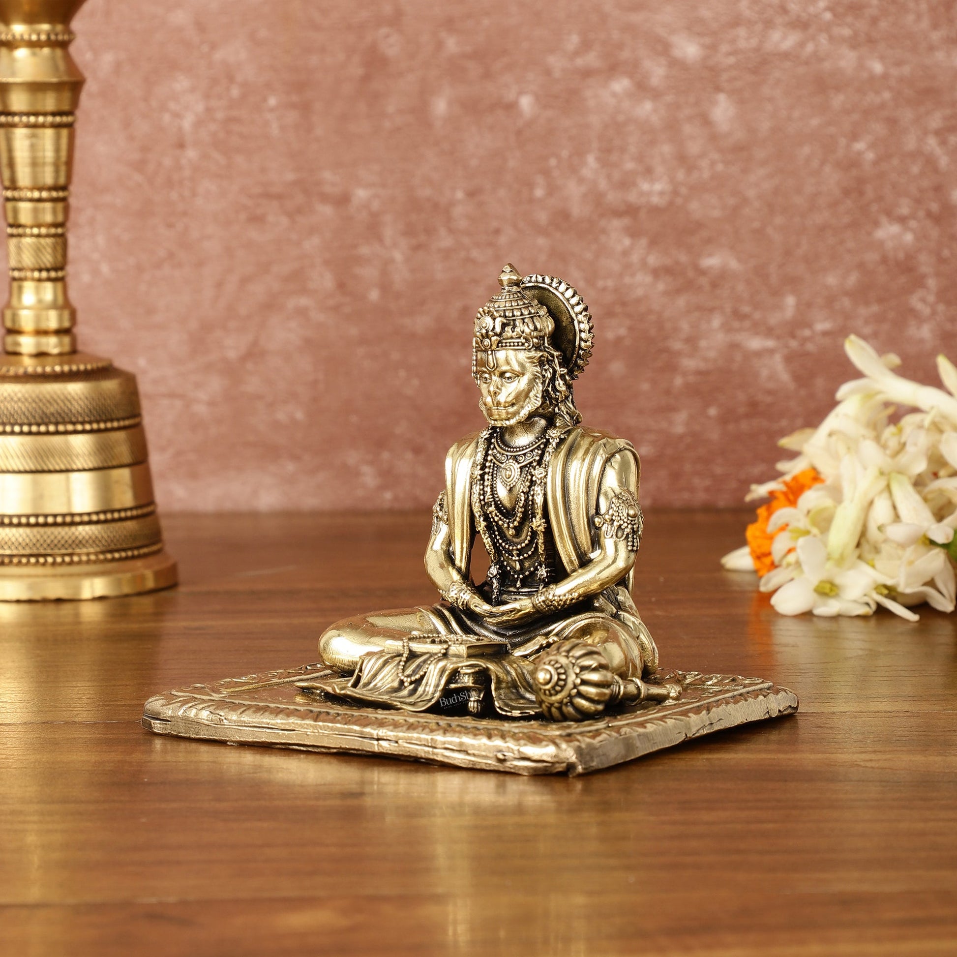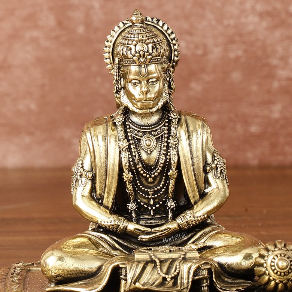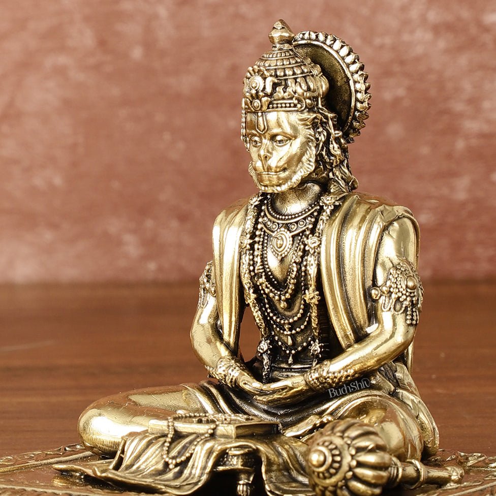 Pure Brass Superfine Meditation Hanuman Idol - Intricately Carved - 4" Tall