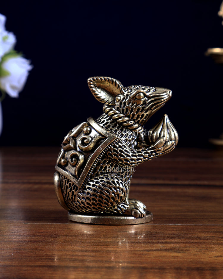 Bring home this finely crafted pure brass Mooshak idol, symbolizing wisdom, intelligence, and auspicious beginnings. Superfine detailing and compact size make it ideal for pooja spaces, work desks, shelves, or as a meaningful spiritual gift.