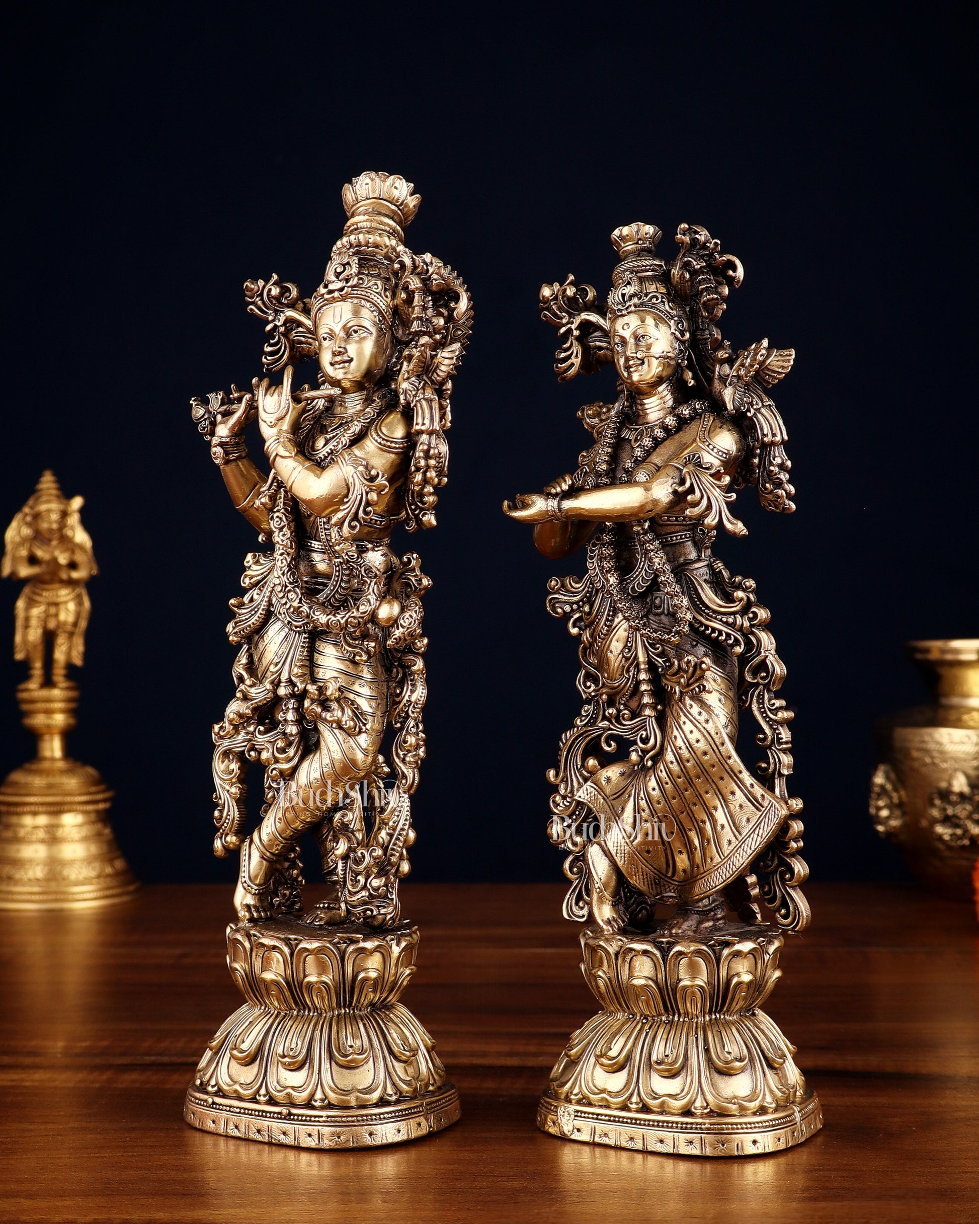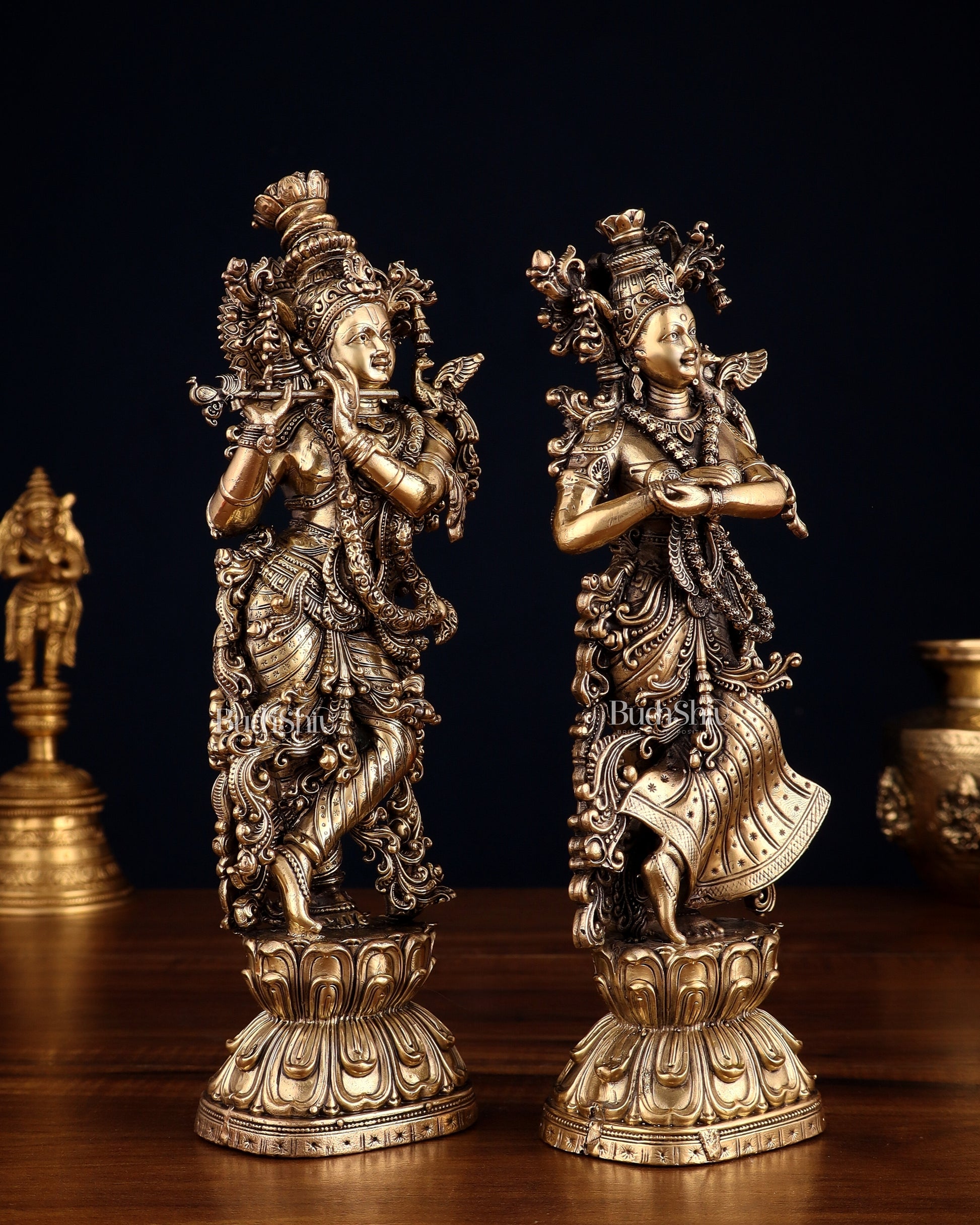 Pure Brass Superfine Radha Krishna Intricate Idol 11.5"