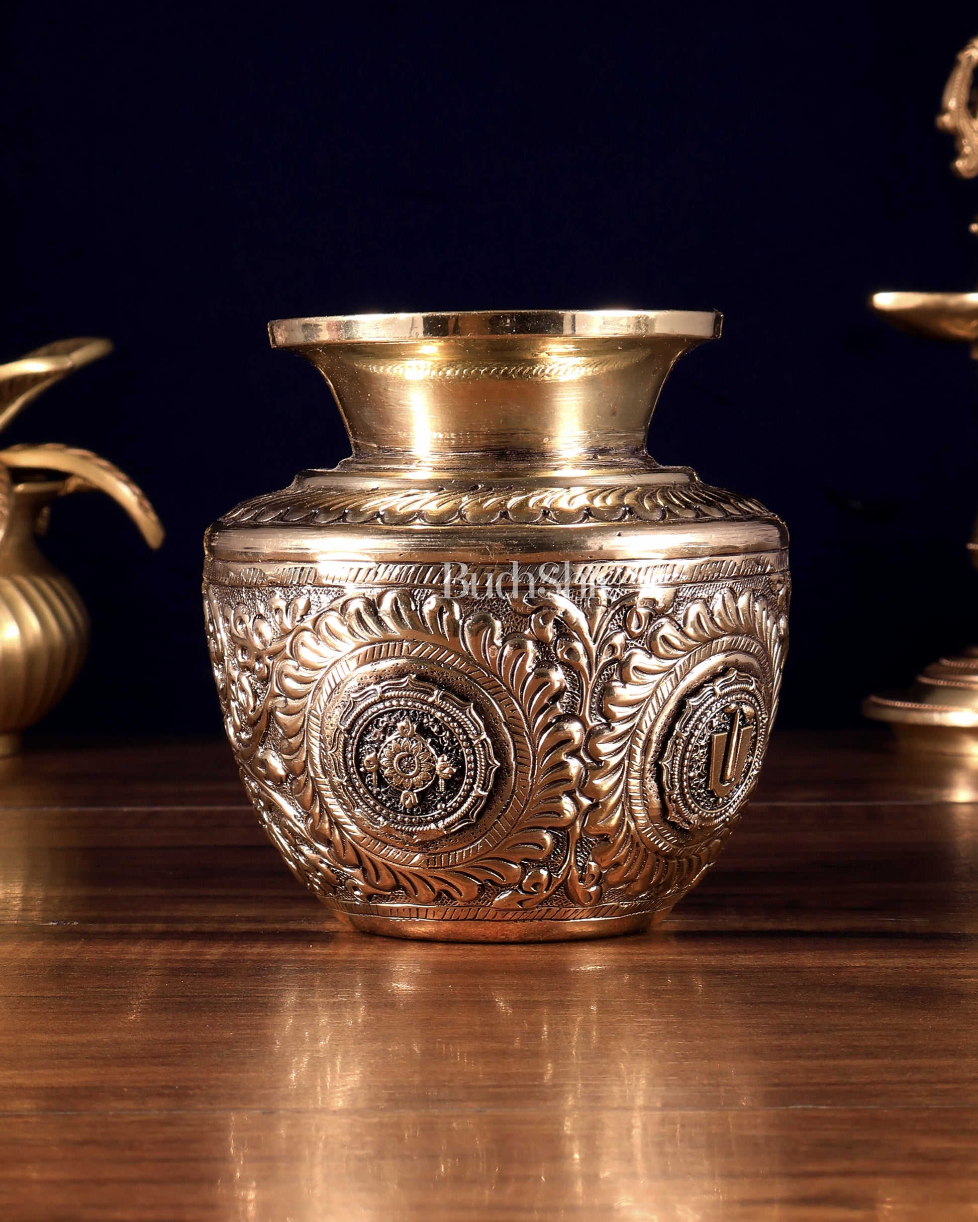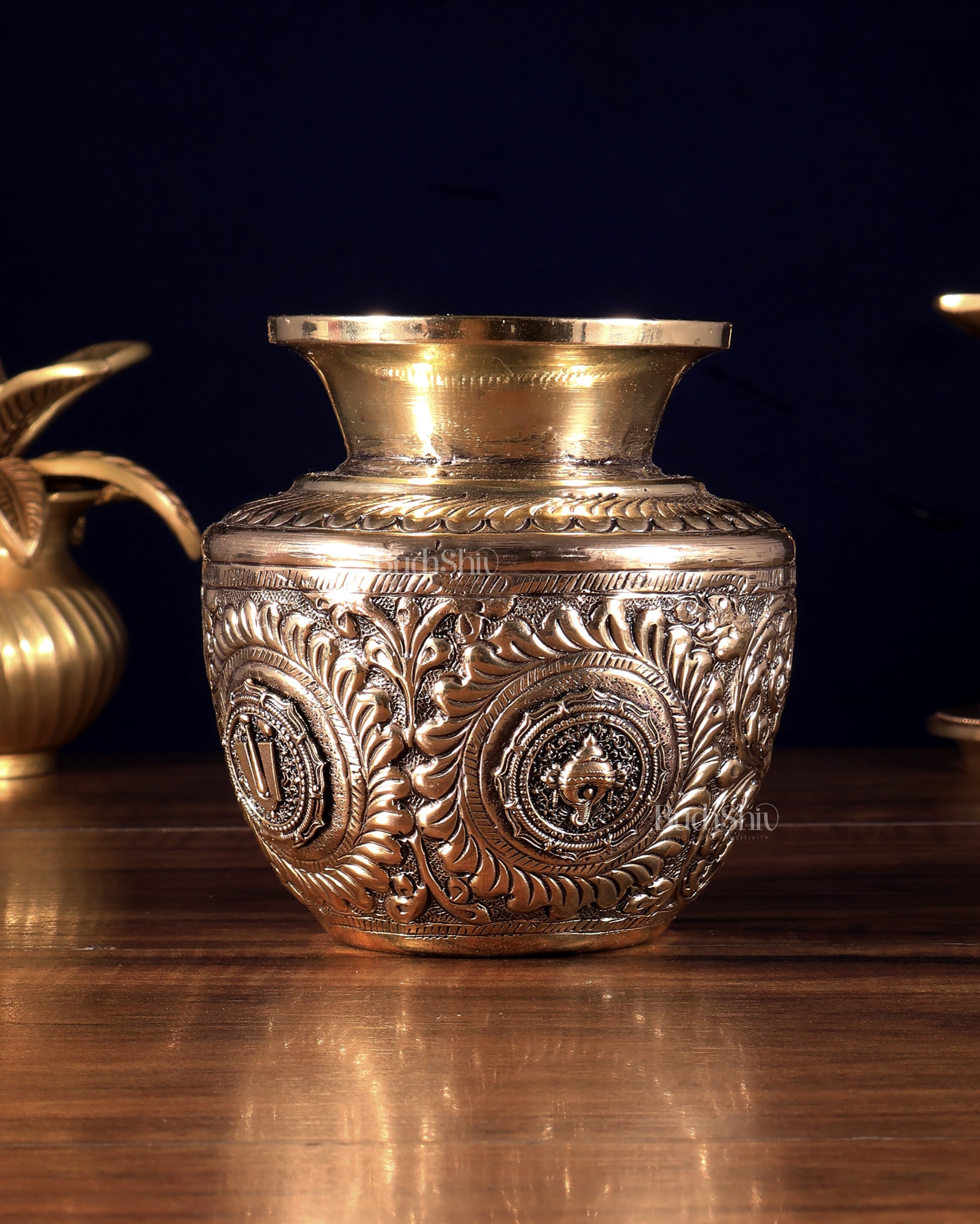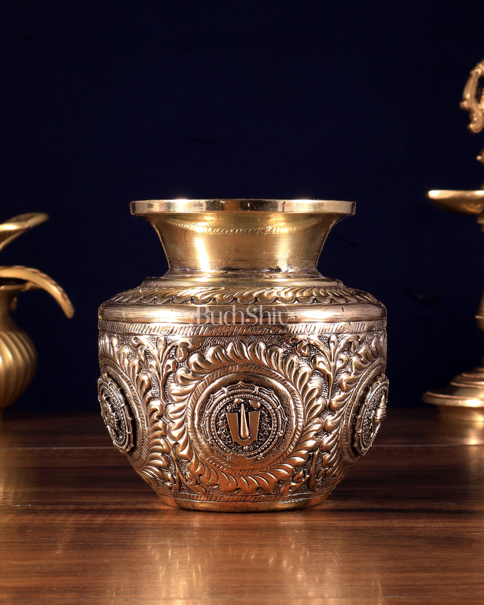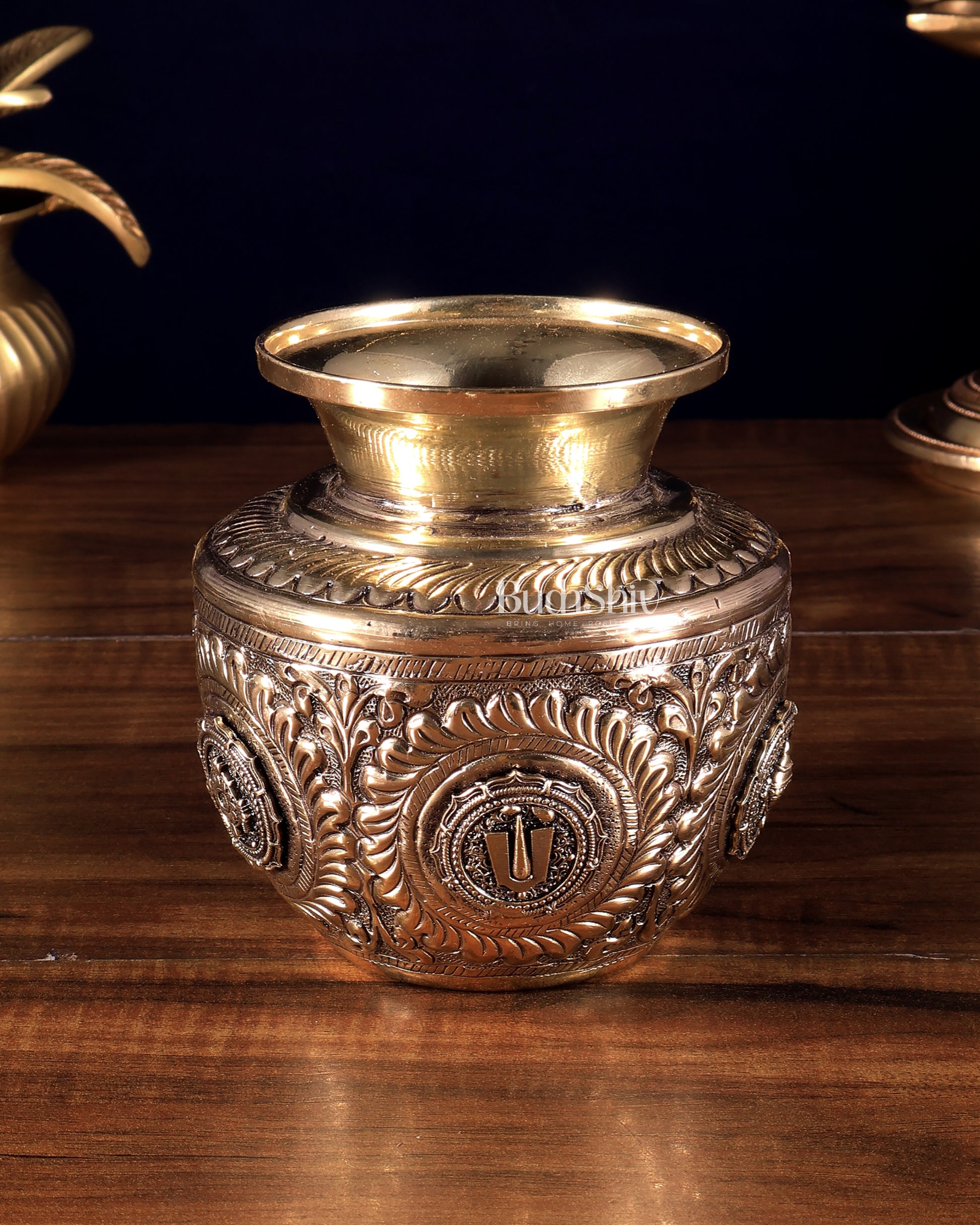 Pure Brass Superfine Vishnu Shankh Chakra Namah Kalash 4.5 inch