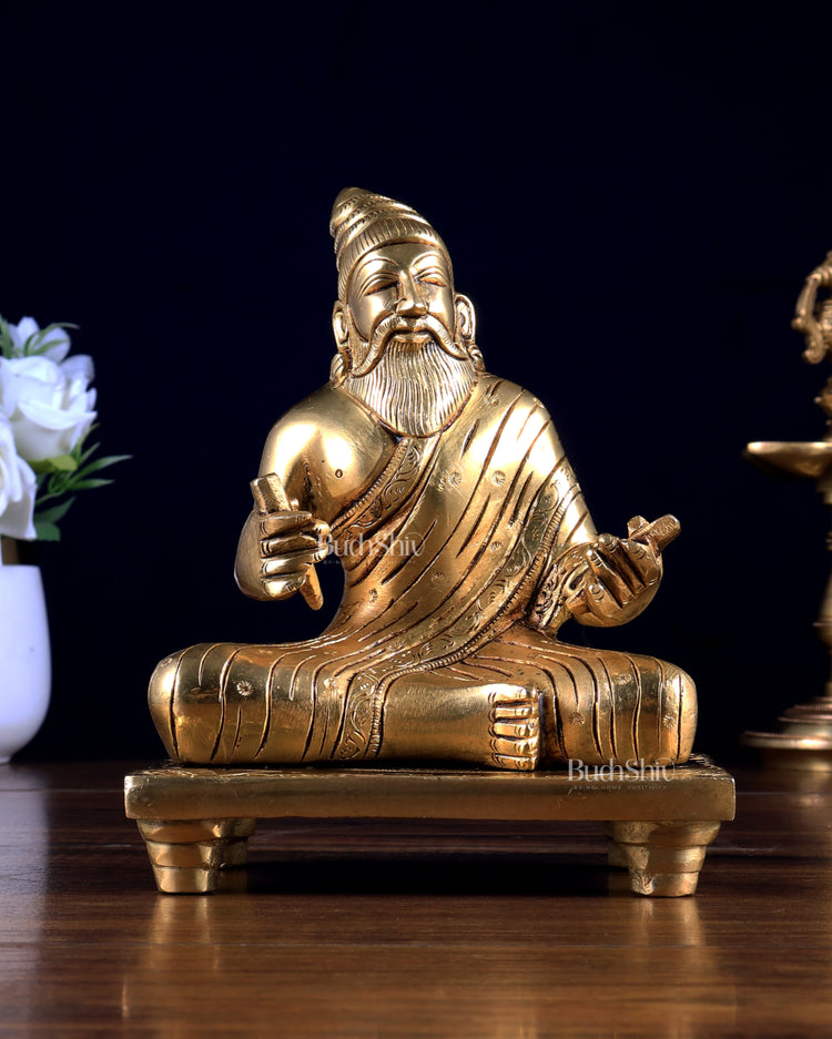 Honor the legacy of the great Tamil poet and philosopher Thiruvalluvar with this beautifully crafted Pure Brass Thiruvallur statue. Designed with intricate detailing in a compact size, this divine piece brings wisdom, ethics, and inspiration to any space—perfect for study rooms, offices, and spiritual corners.