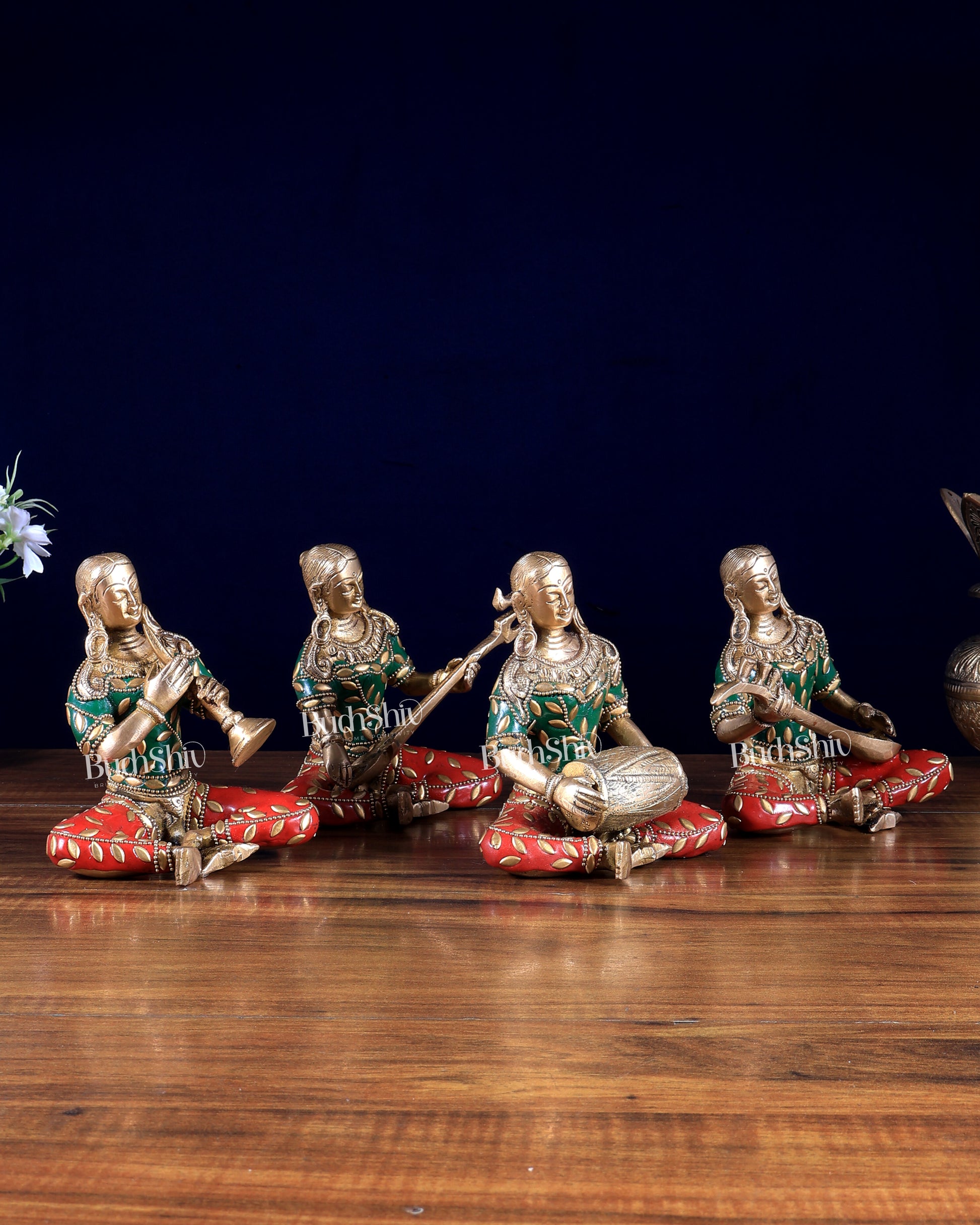 Pure Brass Tribal Lady Musicians – Set of 4 Decorative Showpieces