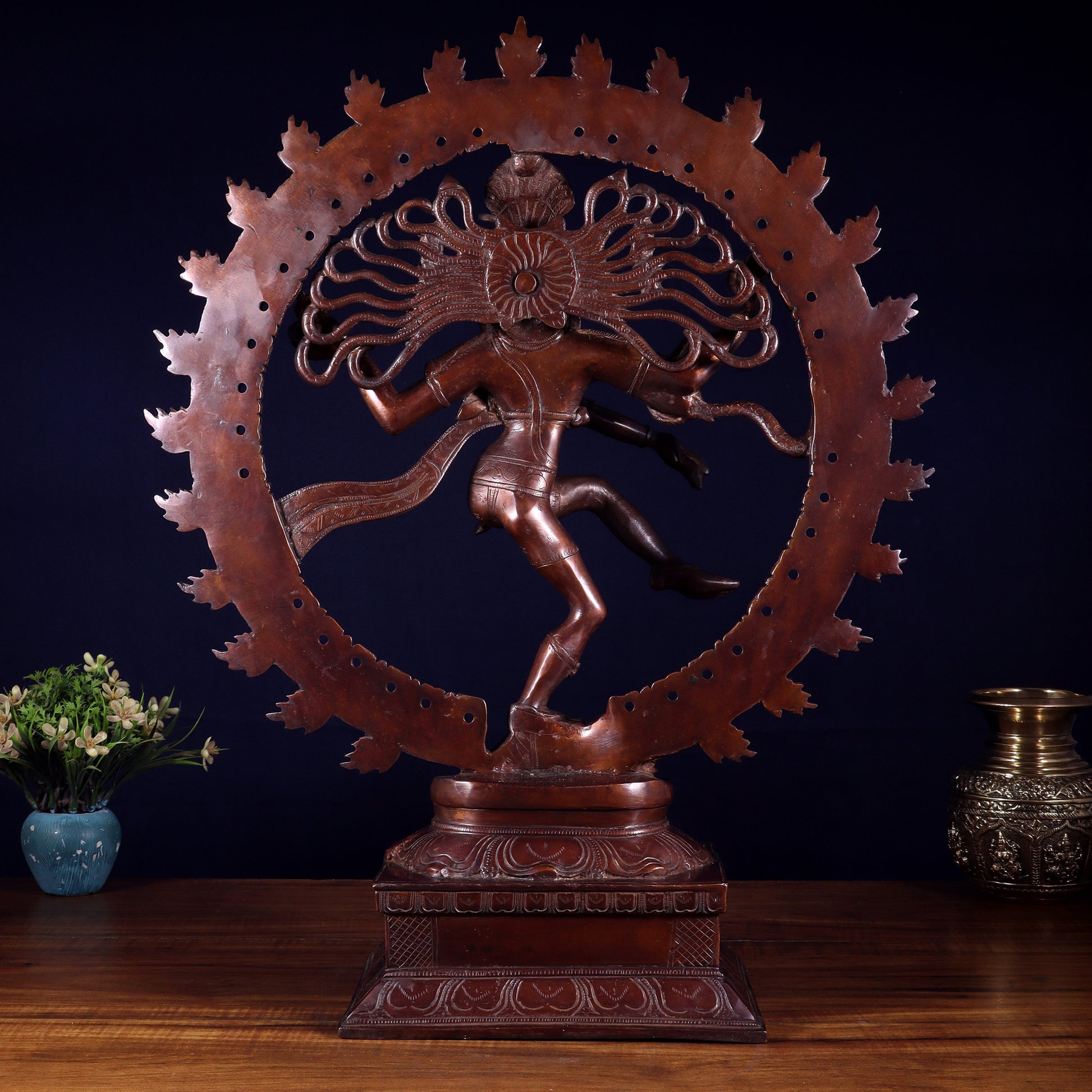 Pure Brass Unique Dancing Shiva Nataraja Statue - Height 21" dark brown