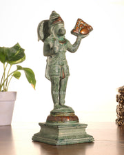 pure brass Sanjeevani Hanuman murti, crafted in a vintage green sand finish that reflects timeless artistry. Depicting Hanuman carrying the Sanjeevani mountain, this idol symbolizes devotion, bravery, and healing energy.