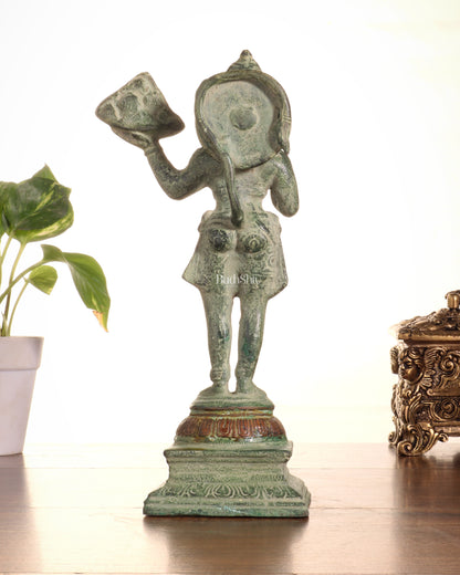 Pure Brass Vintage Sanjeevani Hanuman Statue – Green Sand Finish | 10-Inch