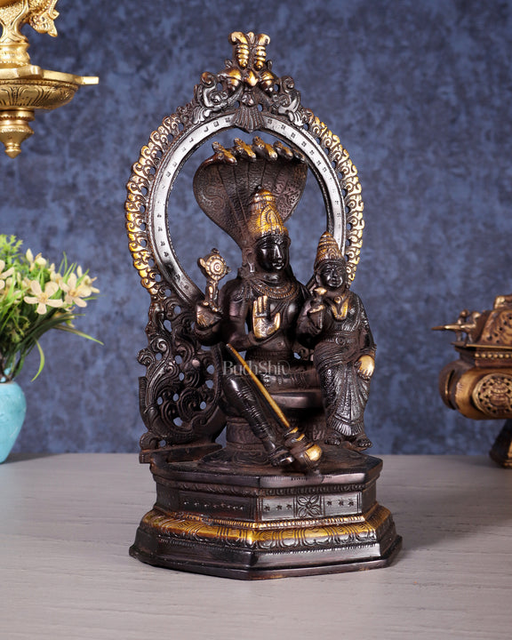 Pure Brass Vishnu Lakshmi Idol Seated with Sheshanaaga - 10" Divine Black and gold