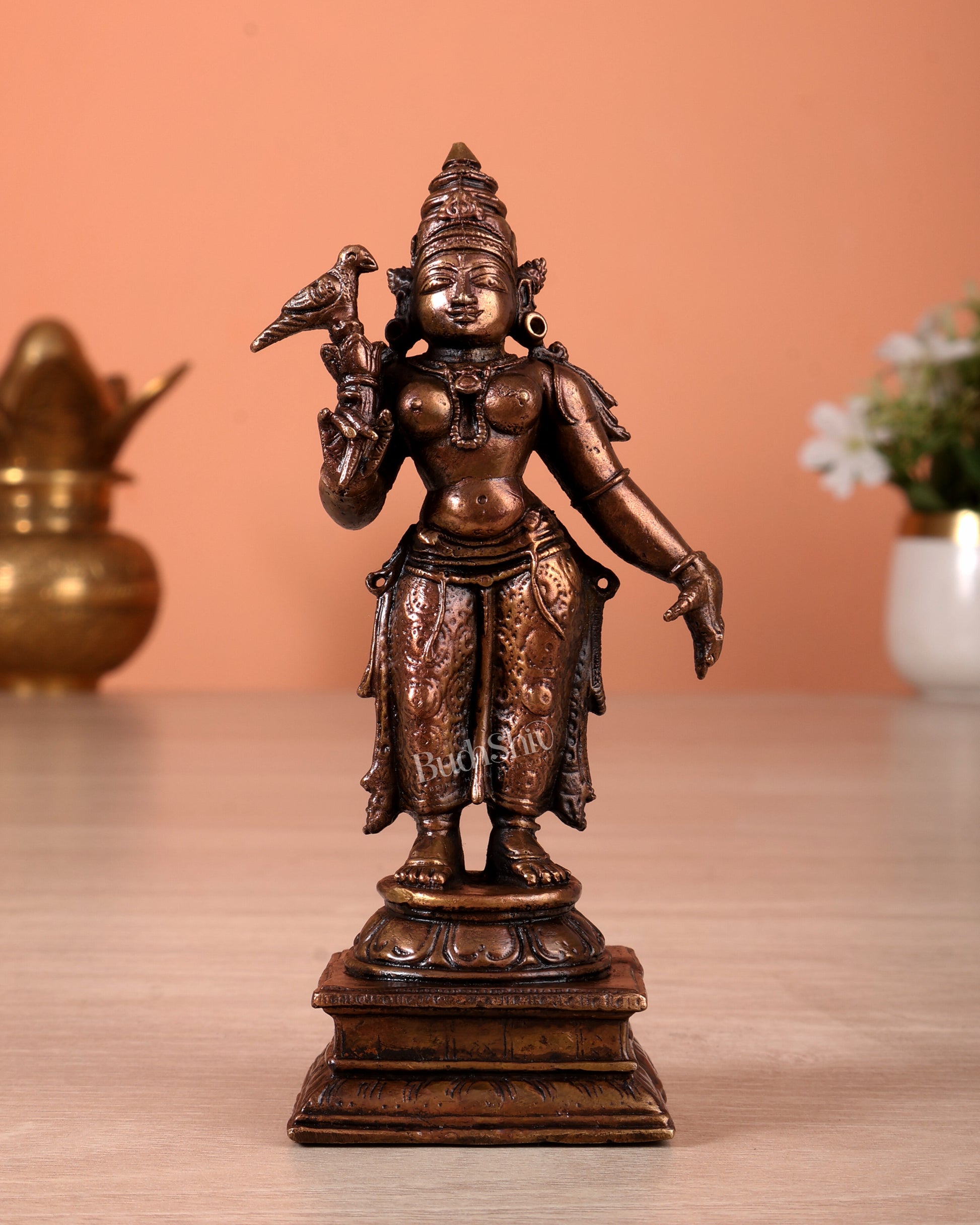 Pure Copper Goddess Meenakshi Idol (4.5 Inch, 310 gm)