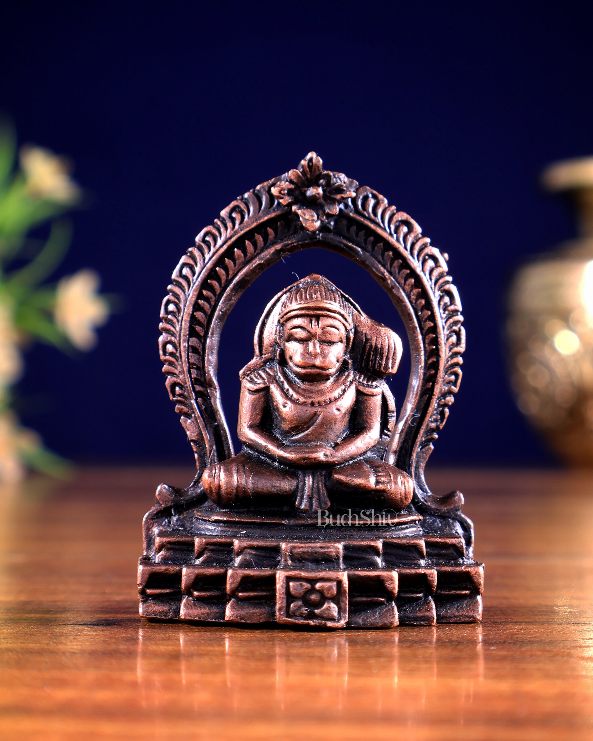Bring home divine calm and strength with this beautifully handcrafted Pure Copper Lord Hanuman miniature idol, depicted in a serene meditation posture. Ideal for small temples, work desks, travel altars, or gifting.