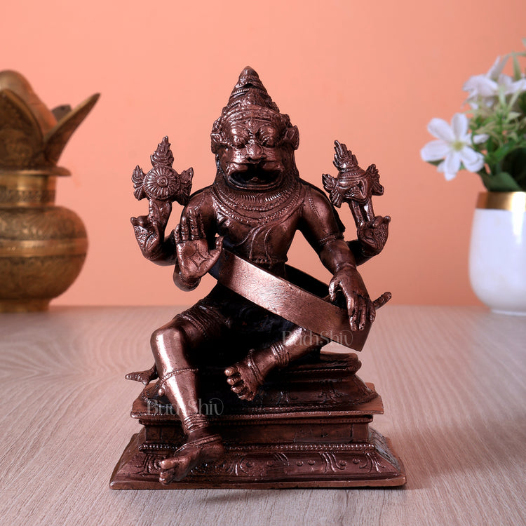 Pure Copper Lord Narasimha Idol (5 Inch, 0.954 Kg)