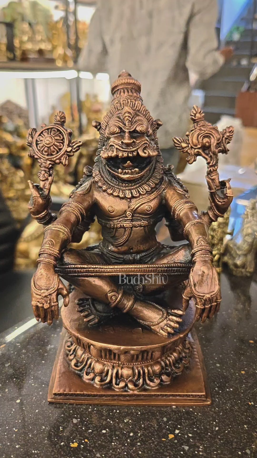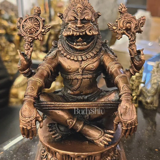 Pure Copper Solid Yoga Narasimha Idol – Large & Heavy 7.5 inch