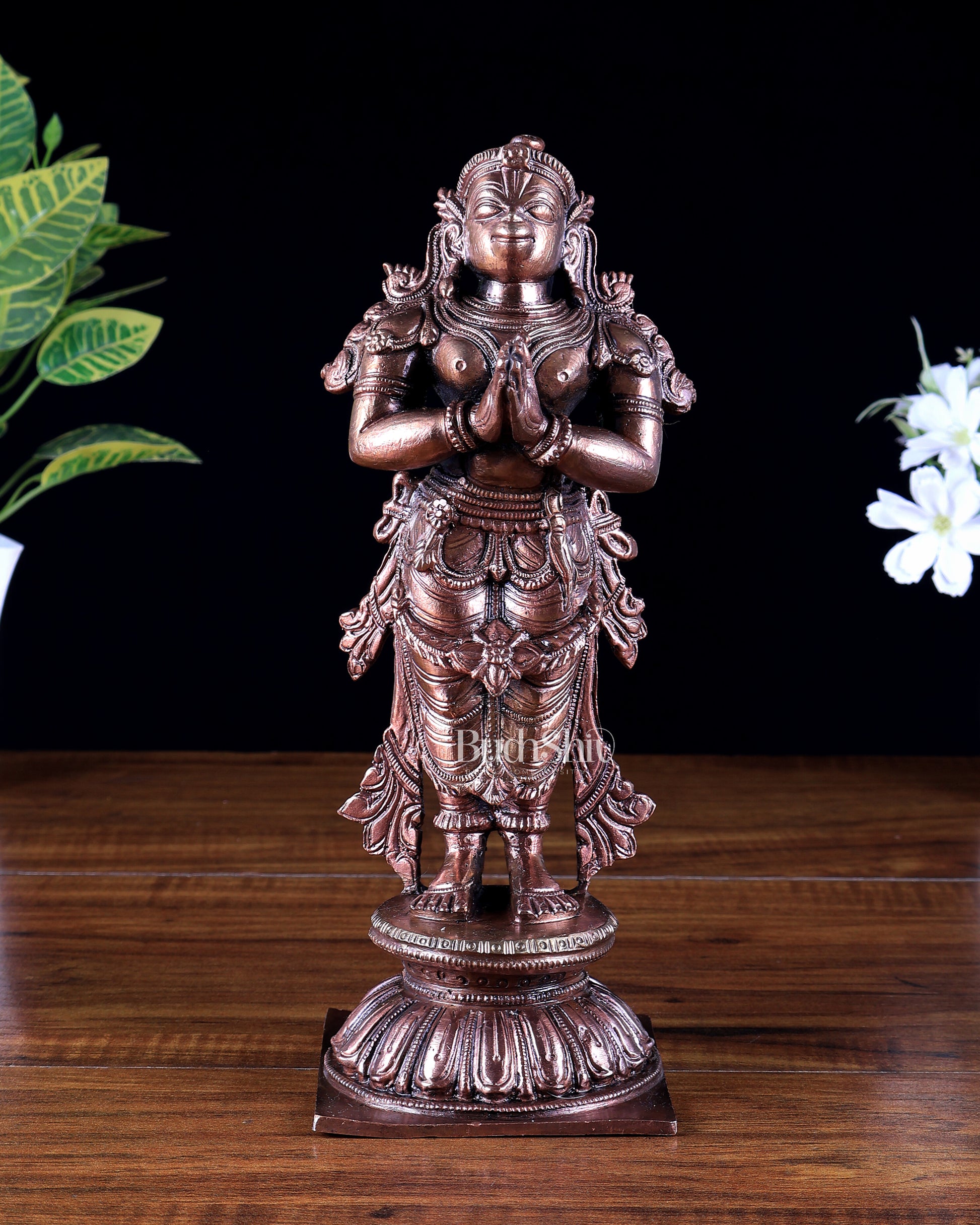 Pure Copper Standing Anjaneya Hanuman Idol | Anjali Namaskar Mudra Murti 9.5 inch
