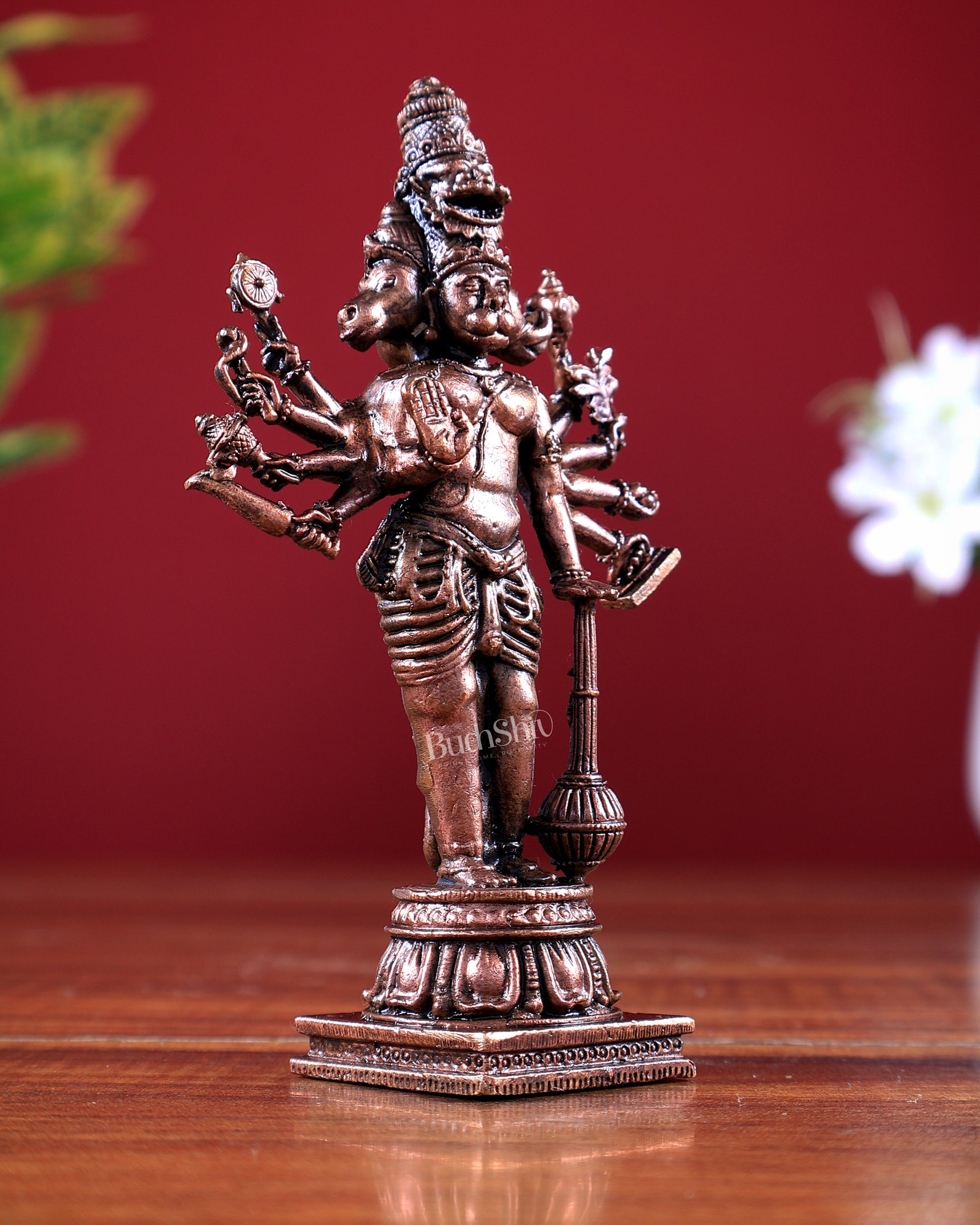 Pure Copper Standing Panchmukhi Hanuman Ji Idol - 4.5 in Height