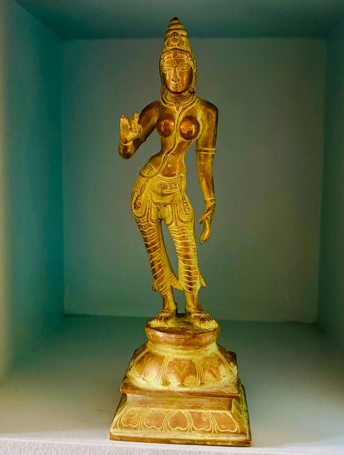 Experience the majestic presence of our Pure Superfine Brass Large Lord Krishna Statue, standing an impressive 4 feet tall. With dimensions of 48 inch in Height, 15 inches in width, 12 inches in depth, and weighing 74 kgs, this exquisite statue radiates divine elegance and spiritual grace, perfect for enhancing your sacred space.