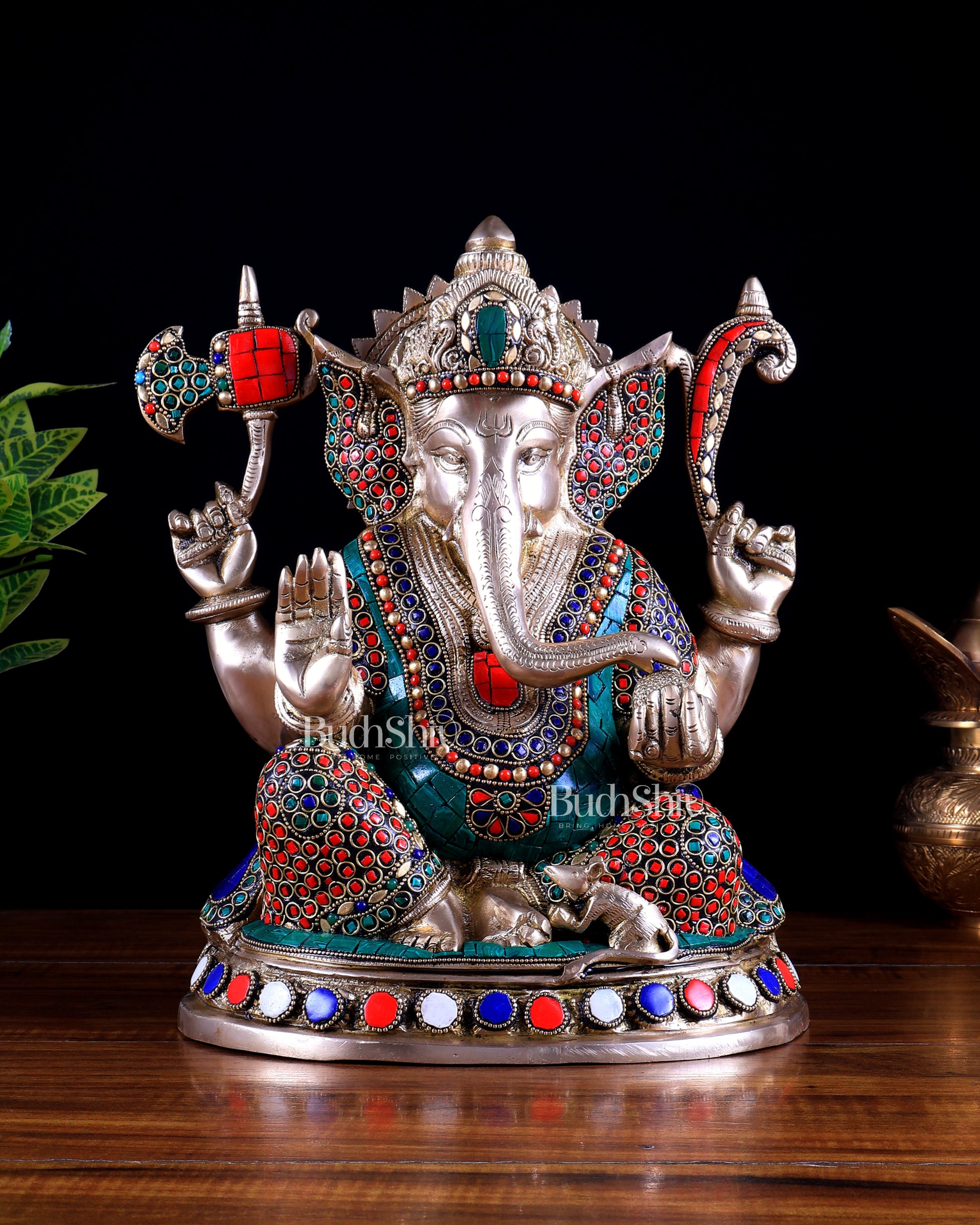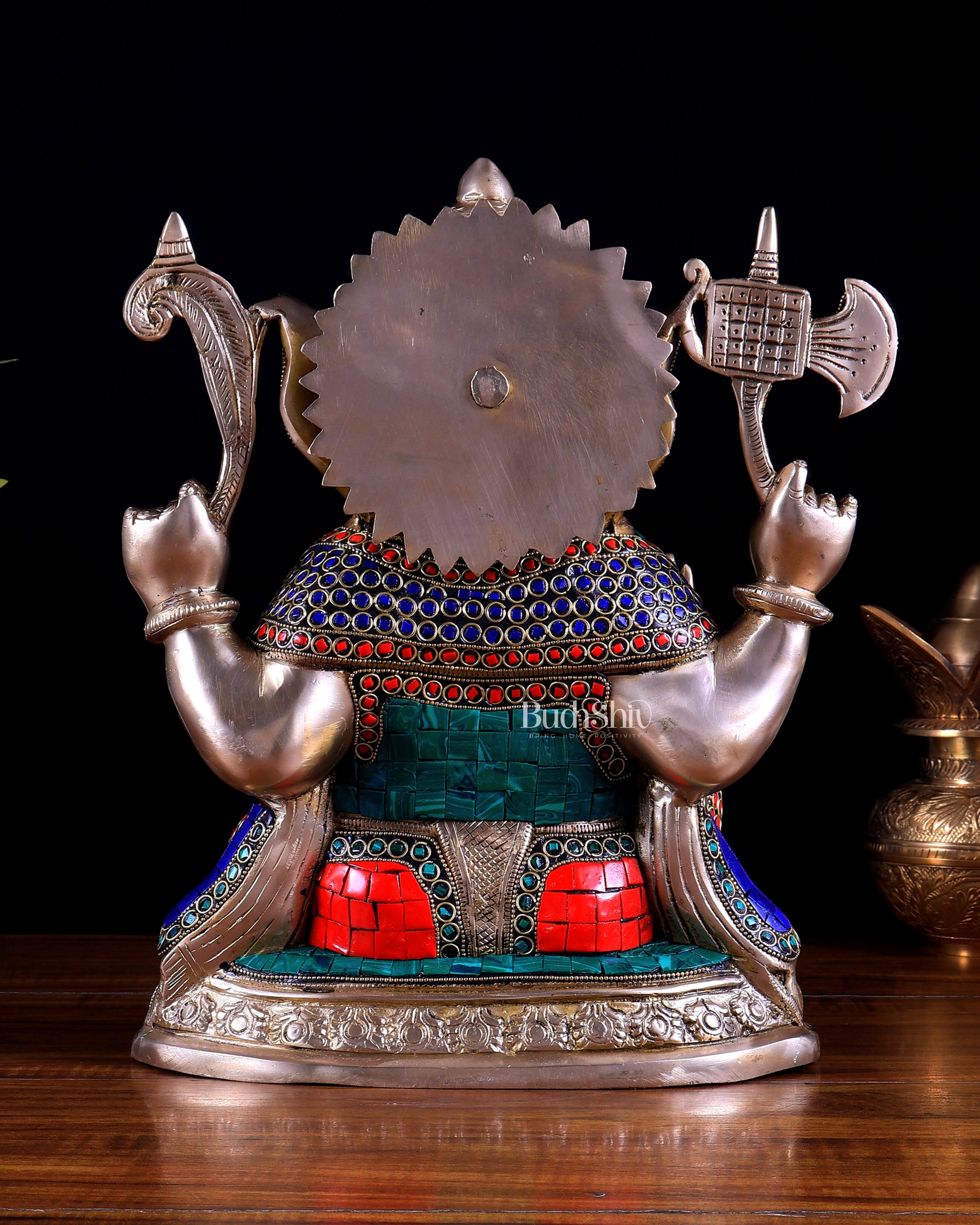 Embrace new beginnings with this exquisite Superfine Brass Ganesha Statue with Stonework 12 inches tall, 10 inches wide, and 6 inches deep, this 8 kg handcrafted idol brings Lord Ganesha’s blessings into your home or sacred space. Perfect for invoking wisdom and prosperity.