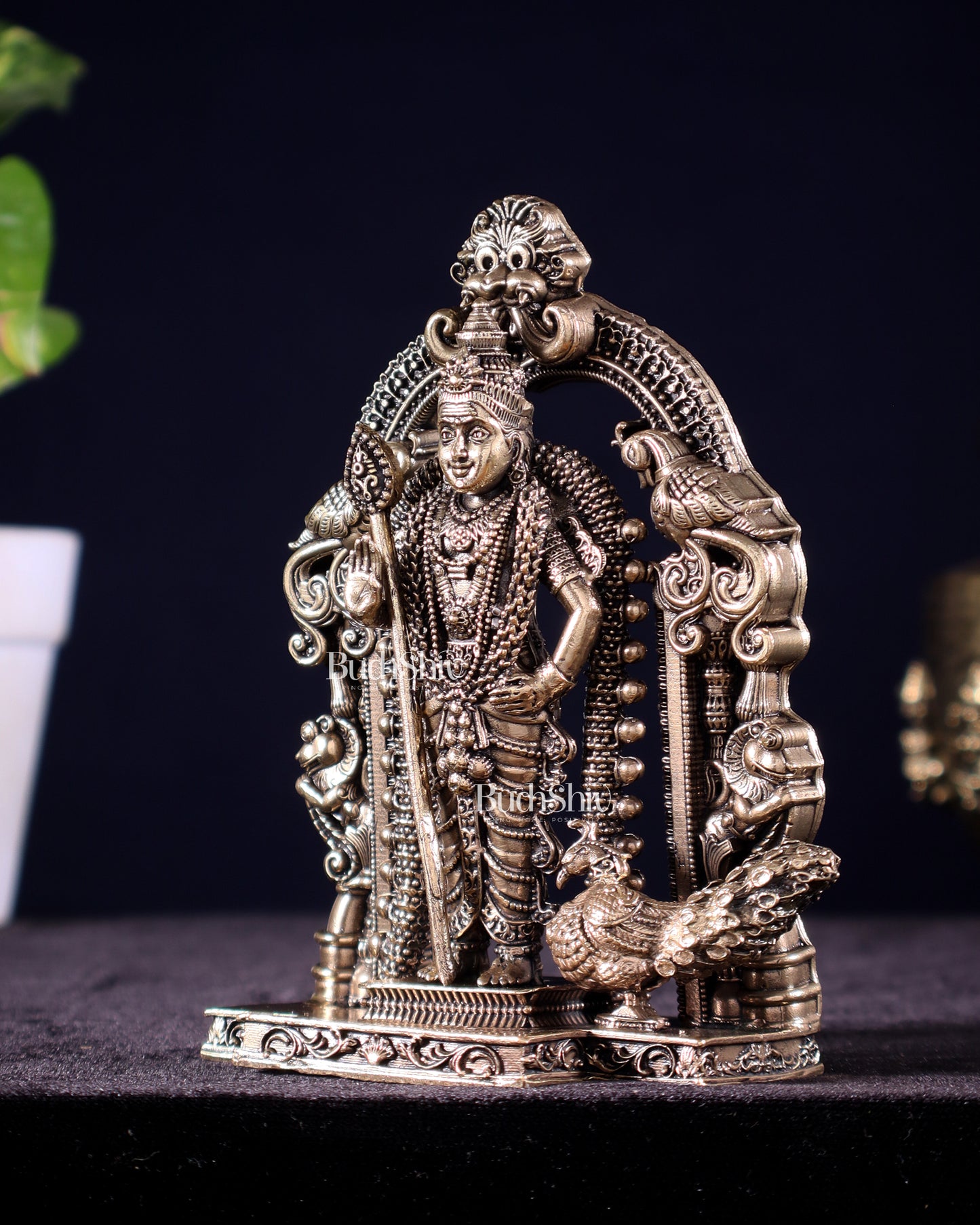 Superfine Brass Lord Murugan Idol – Intricately Crafted, 5"