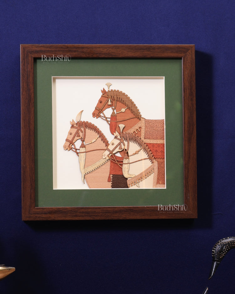 This 3D Wooden Wall Hanging of Three Horses. Expertly carved with attention to detail, each horse is depicted in dynamic motion, creating a sense of vitality and movement that enhances any space. The glass-protected frame adds elegance while preserving the craftsmanship.